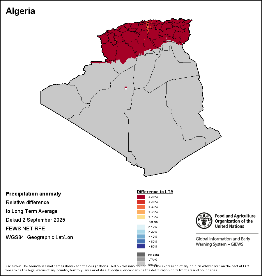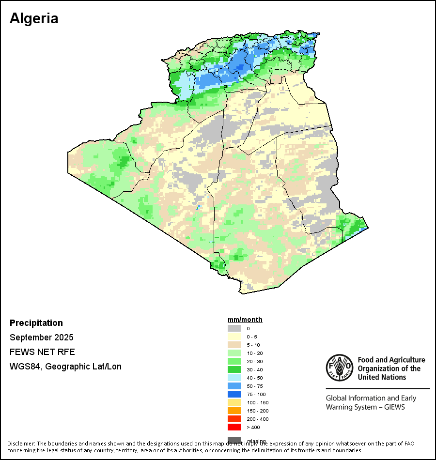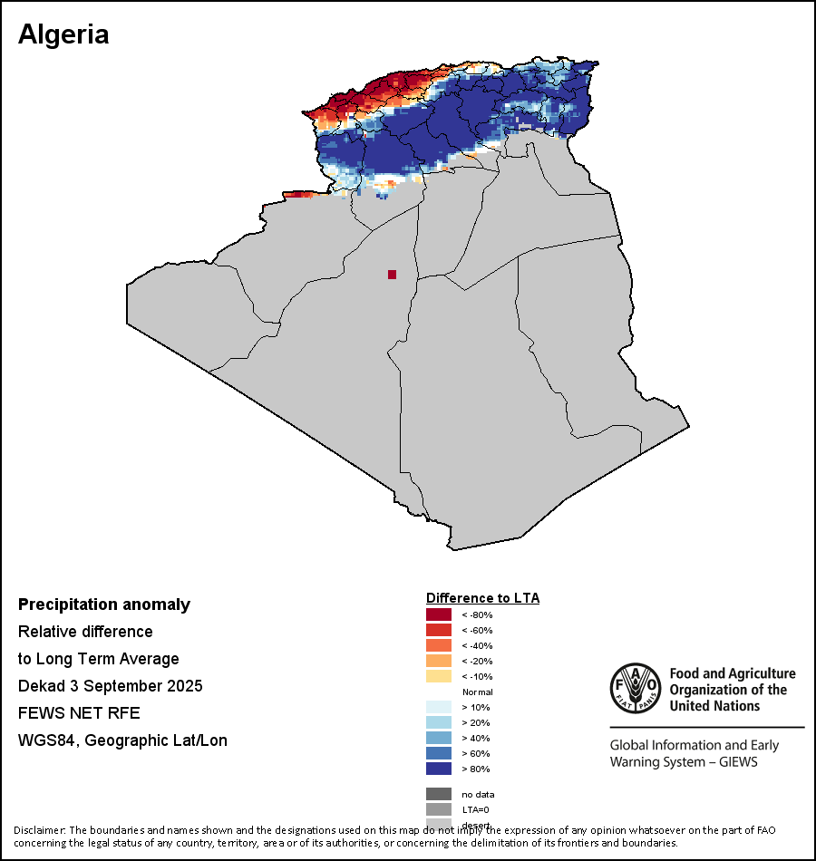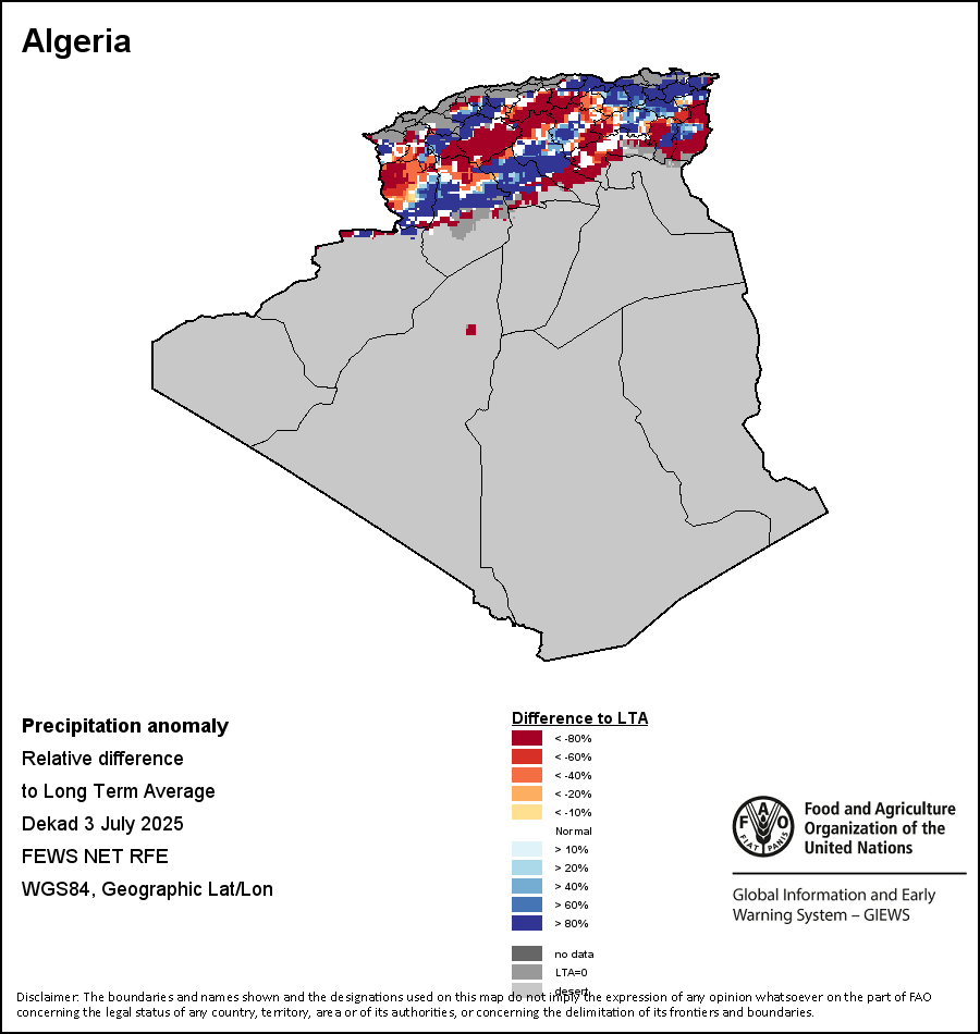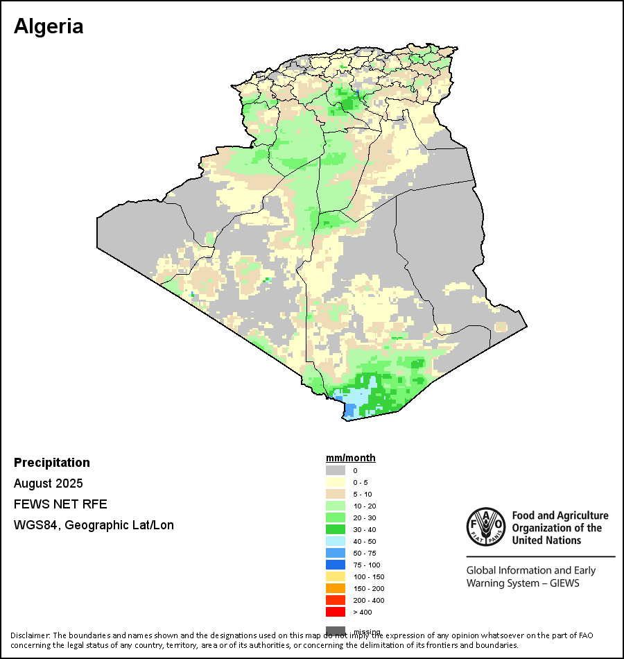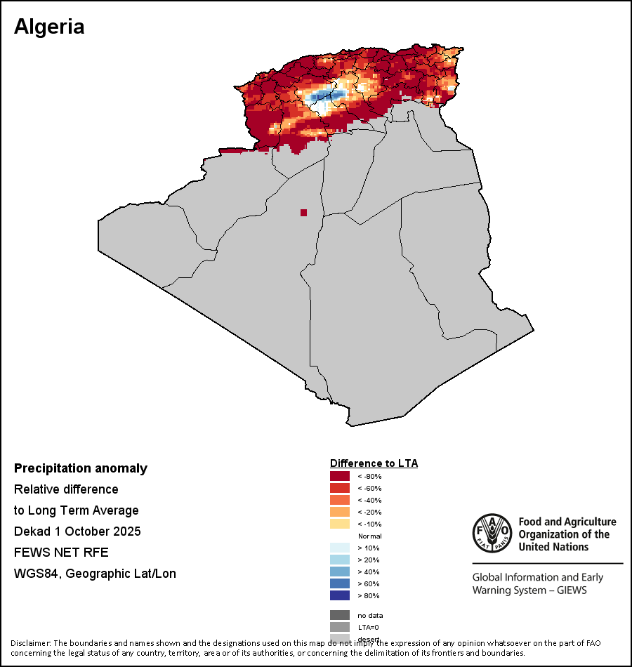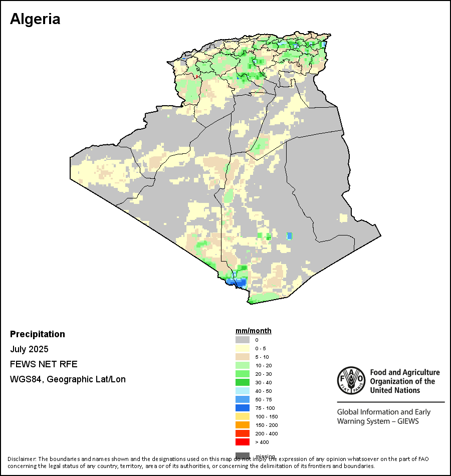 该图谱显示了每一旬(十天)的累积降水量。 所有非洲国家的降水量估算(除佛得角和毛里求斯外)均取自NOAA/FEWSNet,其他国家则取自ECMWF。