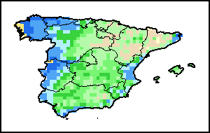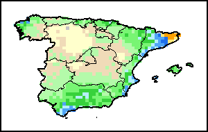 该图谱显示了当前降水量与平均水平之间的差异。 由降水量水平与长期平均值(LTA)进行比较得出,长期平均值系指1989-2015年期间的数值。暖色调指示的是降水量低于平均水平的地区,而冷色调指示的则是降水量高于平均水平的地区。降雨量估算数据来自欧洲中期天气预报这些(ECMWF)。
