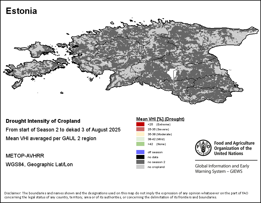 农业干旱依据其强度划分为四类:极端、严重、重度或轻度。干旱的强度通过各全球行政单位分层制度二级区域(GAUL 2)地区累积加权平均植被健康指数计算得出,意味着植被健康状况越差旱情就越严重。