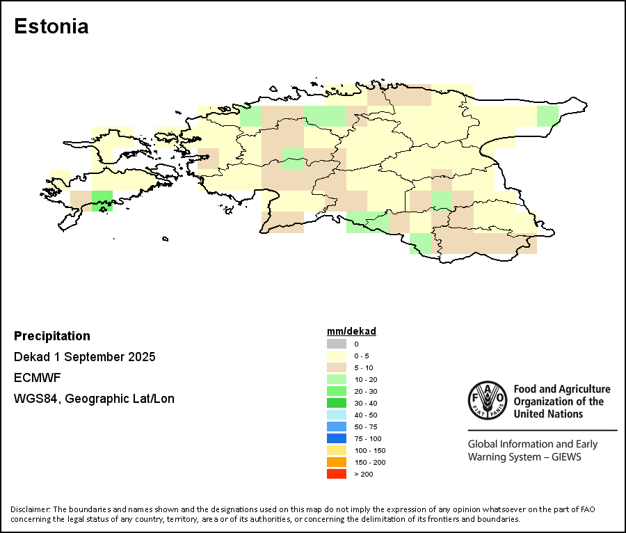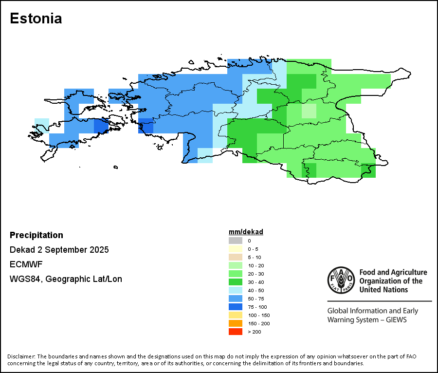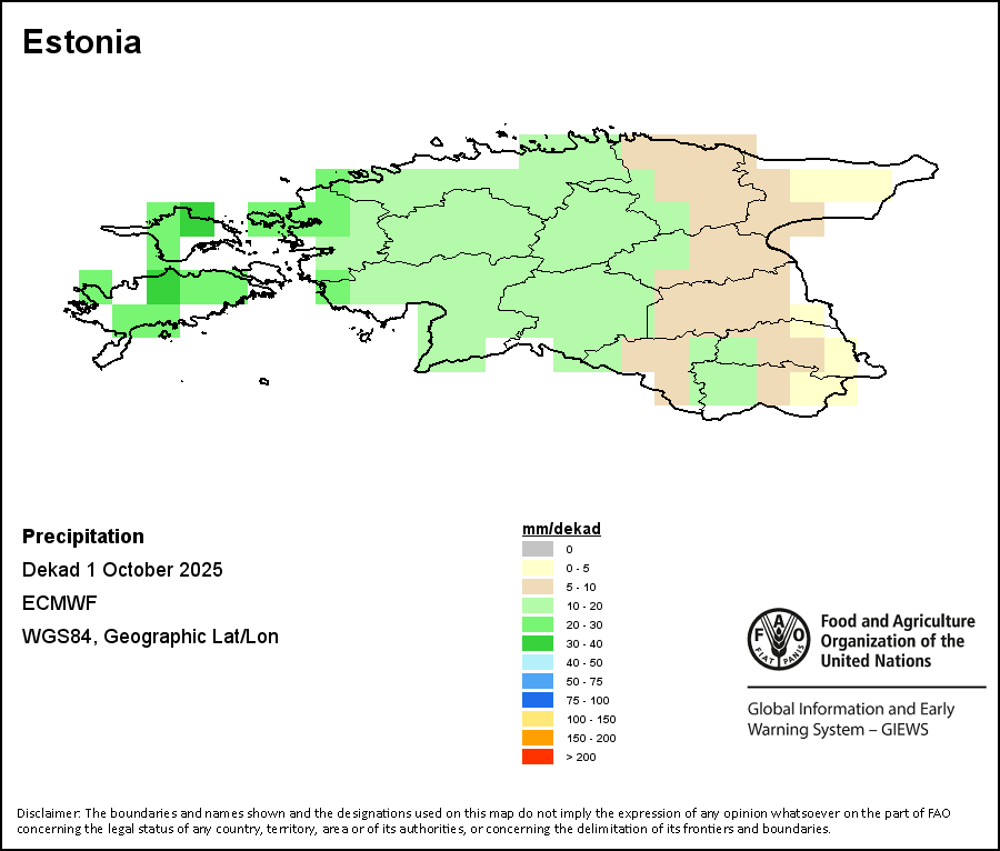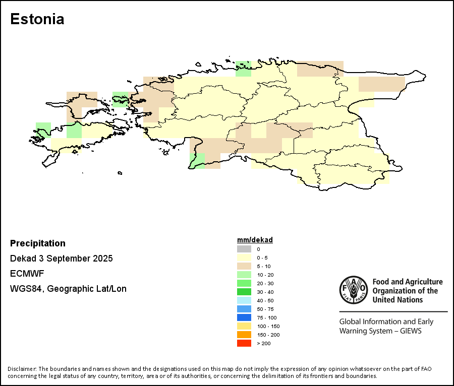 该图谱显示了每一旬(十天)的累积降水量。 所有非洲国家的降水量估算(除佛得角和毛里求斯外)均取自NOAA/FEWSNet,其他国家则取自ECMWF。