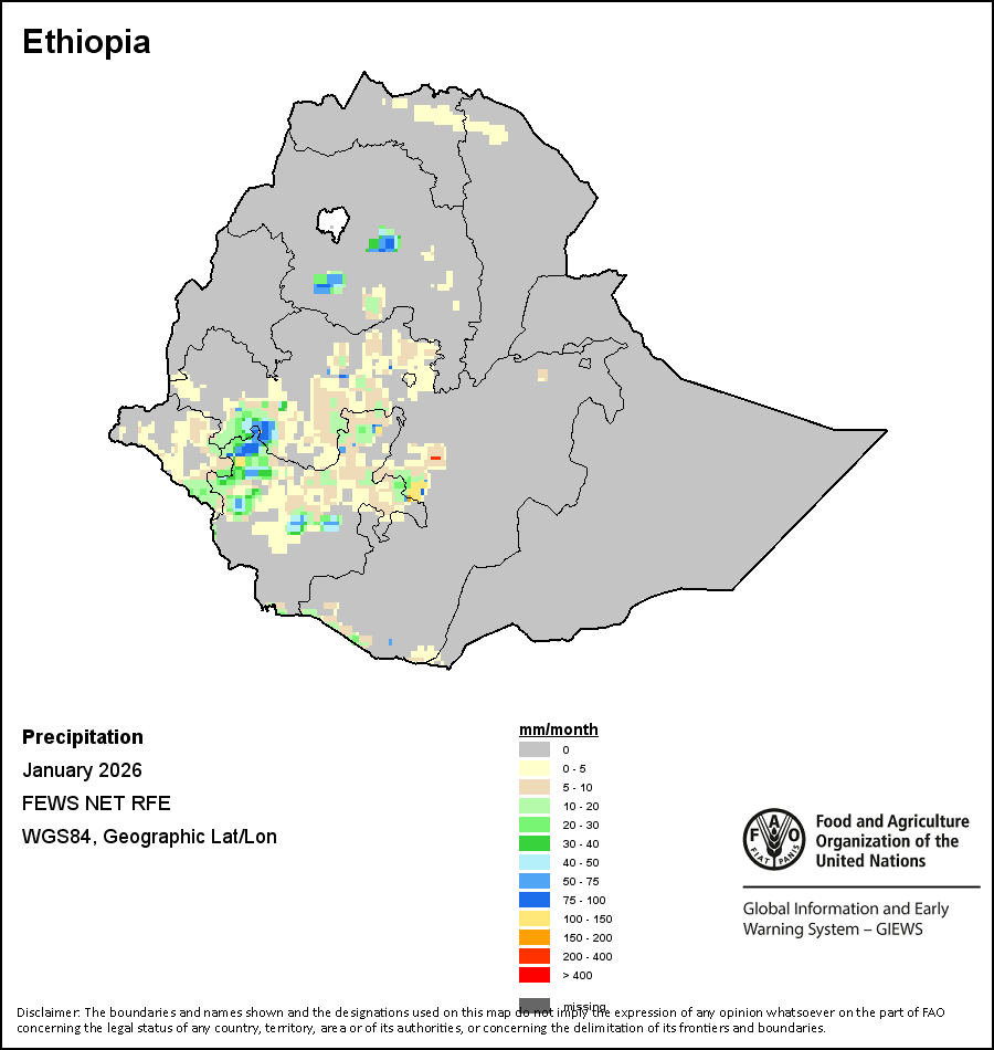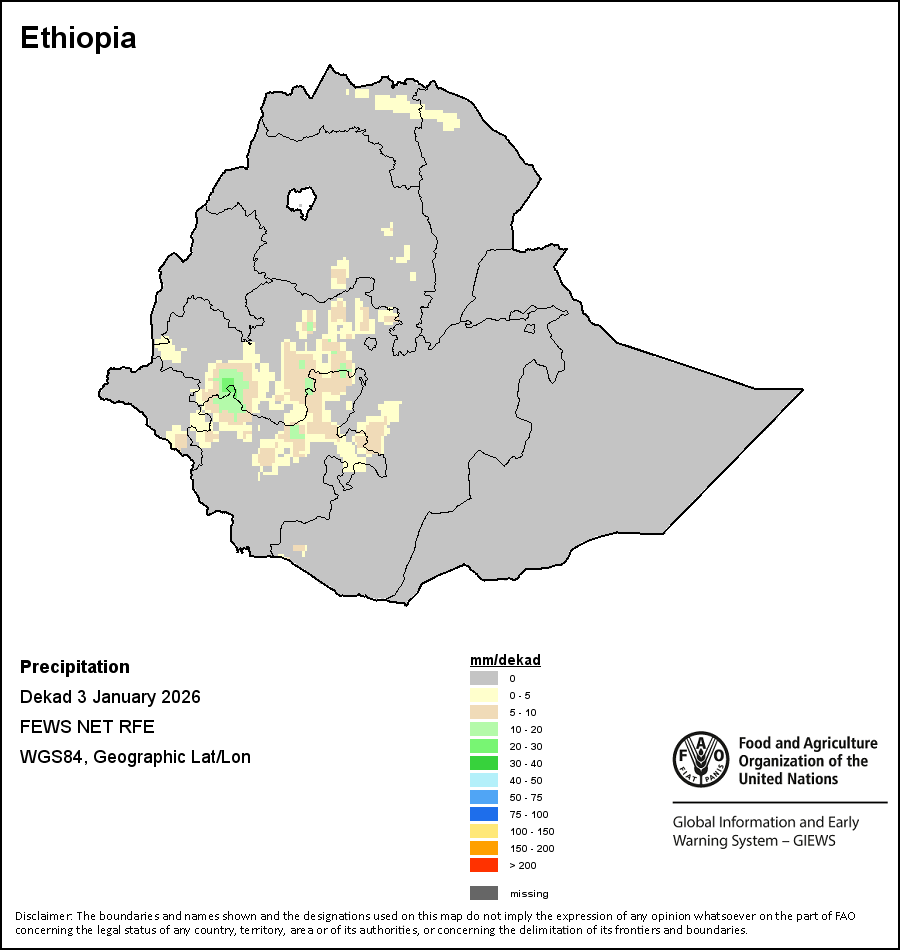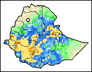 Los mapas y gráficos nacionales representan el último periodo de 36 meses de los indicadores estacionales, de vegetación y de precipitación. Los datos se presentan por periodos de 10 días y por meses. Los tres indicadores de vegetación se basan en datos de vegetación registrados cada diez días por el sensor METOP-AVHRR con una resolución de 1km (2007 y posterior). Los datos con una resolución de 1km del período 1984-2006 se extrapolaron a partir del conjunto de datos NOAA-AVHRR con 16km de resolución. Las estimaciones de precipitación de todos los países africanos (excepto Cabo Verde y Mauricio) se obtienen de NOAA/FEWSNet (16km de resolución), mientras que para los restantes países los datos se obtienen Centro Europeo de Predicción Meteorológica a Plazo Medio (ECMWF siglas en Inglés, 25km de resolución). Debido a la mayor resolución de los indicadores de vegetación (p.ej., NDVI, VHI) en comparación con los indicadores de precipitación de resolución más gruesa, el número de unidades subnacionales para las que se pueden generar estadísticas zonales válidas para los índices de vegetación es mayor que el número de unidades para los indicadores de precipitación en algunos países.