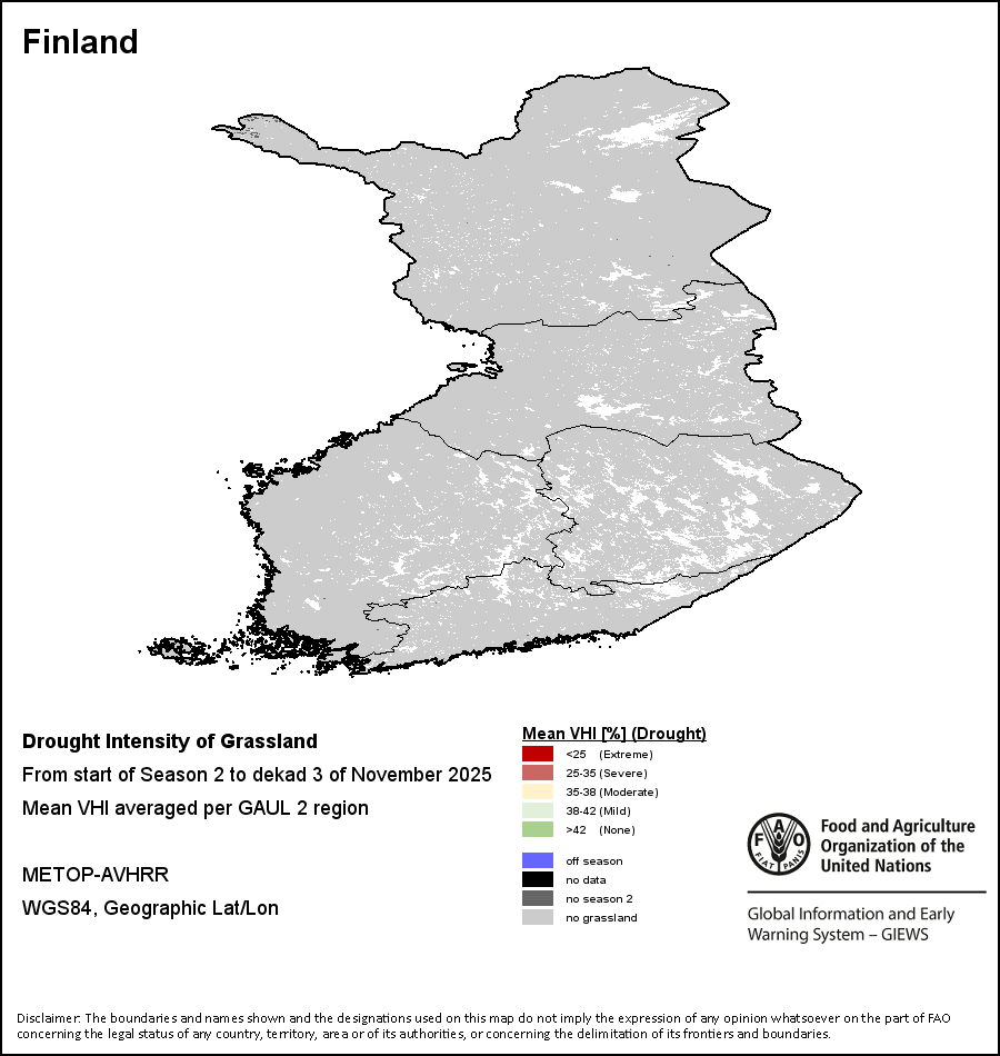 تصور الخرائط والمخططات البيانية المرسومة على مستوى البلد آخر 36 شهراً في للمؤشرات الموسمية والنباتية وتلك المتعلقة بالهطولات. وتمثل البيانات خلال فترة عشرة أيام وشهر. مد جميع المؤشرات النباتية الثلاثة على بيانات نباتية لعشرة أيام مأخوذة من حساس METOP-AVHRR بدقة 1 كم (2007 وما بعد). أما بيانات الفترة من 1984-2006 والتي هي أيضاً بدقة 1 كم فمأخوذة من مجموعة بيانات المقياس الإشعاعي المتقدم ذو الدقة العالية جدا التابع للإدارة الوطنية لدراسة المحيطات والغلاف الجوي بدقة 16 كم. وتؤخذ تقديرات الهطولات لكافة بلدان أفريقيا (ما عدا كابو فيردي وموريشوس) من شبكة بيانات الإدارة الوطنية لدراسة المحيطات والغلاف الجوي/نظام الإنذار المبكر بالمجاعة، أما بالنسبة للبلدين المتبقيين فتؤخذ من المركز الأوروبي للتنبؤات الجوية المتوسطة المدى. بفضل ازياد دقة مؤشرات الغطاء النباتي (من قبيل المؤشر الموحد لتباين الغطاء النباتي و مؤشر الغطاء النباتي) قياسًا بمؤشرات الهطول الأقل دقة، نجد أن عدد الوحدات التي يمكن توليد إحصاءات مناطقية صالحة لها على المستوى دون الوطني باستخدام مؤشرات الغطاء النباتي يكون أكبر من عدد الوحدات المتاحة لمؤشرات الهطول لدى بلدان معينة.