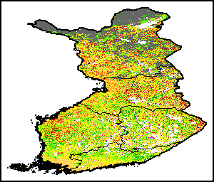 خضعت دراسة المؤشر الموحد لتباين الغطاء النباتي إلى مقارنة مع المعدل طويل الأجل (1984- 2015) وبيانات العام السابق على المستوى الإداري الأول.