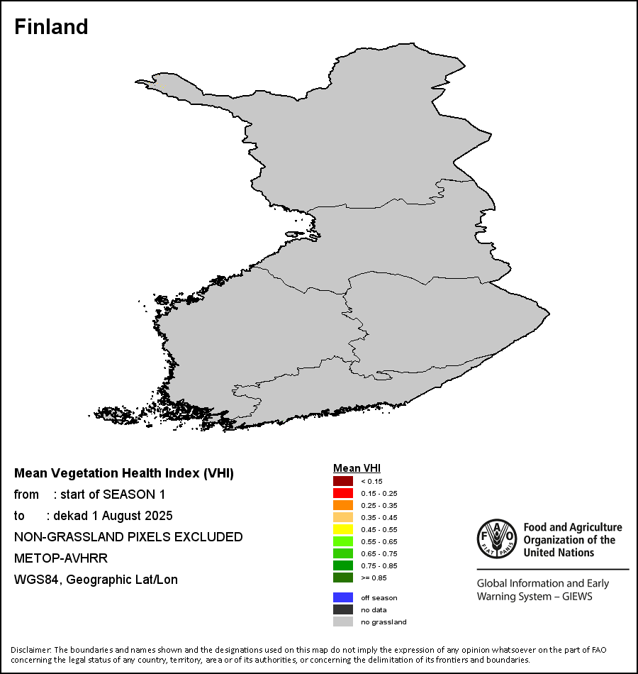 The country level maps and graphs depict the latest 36-month period of the seasonal, vegetation and precipitation indicators. The data is presented by dekad and month.   More