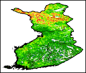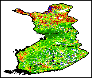 The Annual Weighted Mean Vegetation Health Index (Weighted Mean VHI) allows the user to assess the overall severity of drought for an entire growing season, examining the vegetation health and the influence of temperature on plant conditions. The Annual Weighted Mean VHI takes into account the sensitivity of a crop to water stress over its growing season, and calculates the temporal impact of moisture deficits and temperature over the complete growing season.