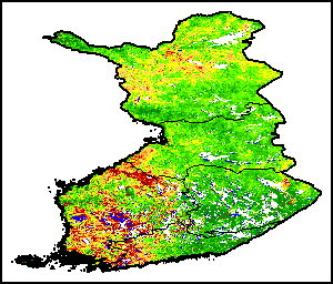The Vegetation Health Index (VHI) illustrates the severity of drought based on the vegetation health and the influence of temperature on plant conditions. The VHI is a composite index and the elementary indicator used to compute the ASI. It combines both the Vegetation Condition Index (VCI) and the Temperature Condition Index (TCI). The TCI is calculated using a similar equation to the VCI, but relates the current temperature to the long-term maximum and minimum , as it is assumed that higher temperatures tend to cause a deterioration in vegetation conditions. A decrease in the VHI would, for example, indicate relatively poor vegetation conditions and warmer temperatures, signifying stressed vegetation conditions, and over a longer period would be indicative of drought. The VHI images are computed for the two main seasons and in three modalities: dekadal, monthly and annual.