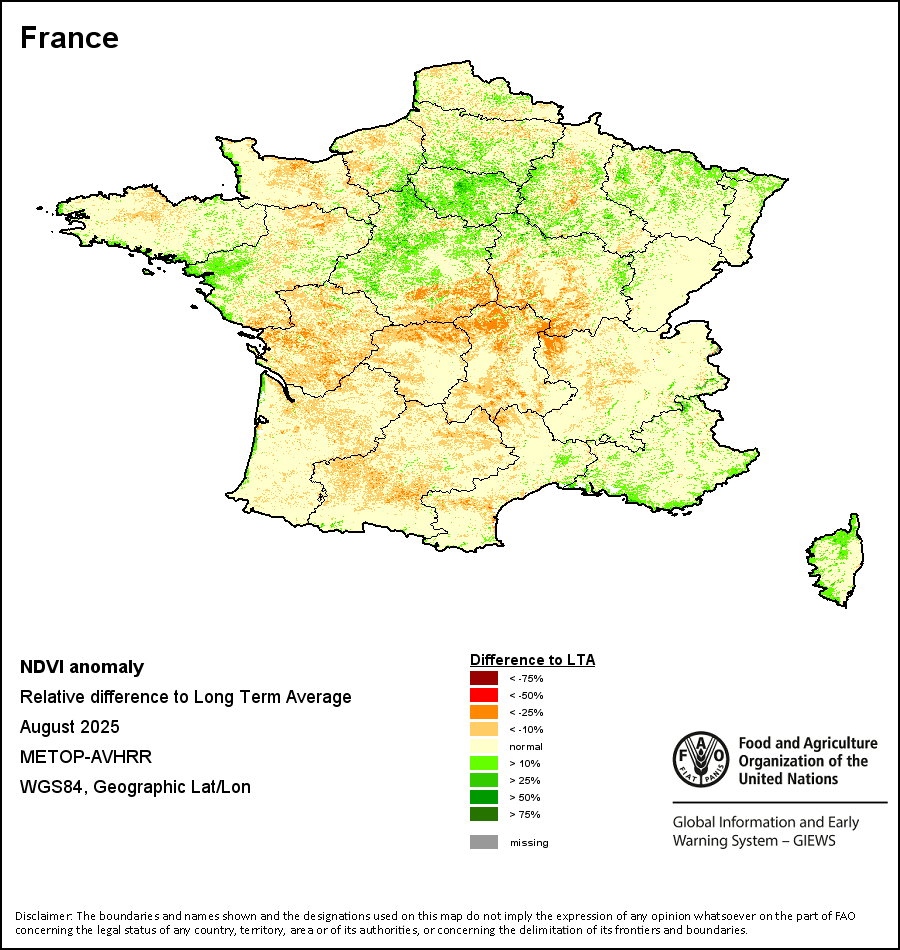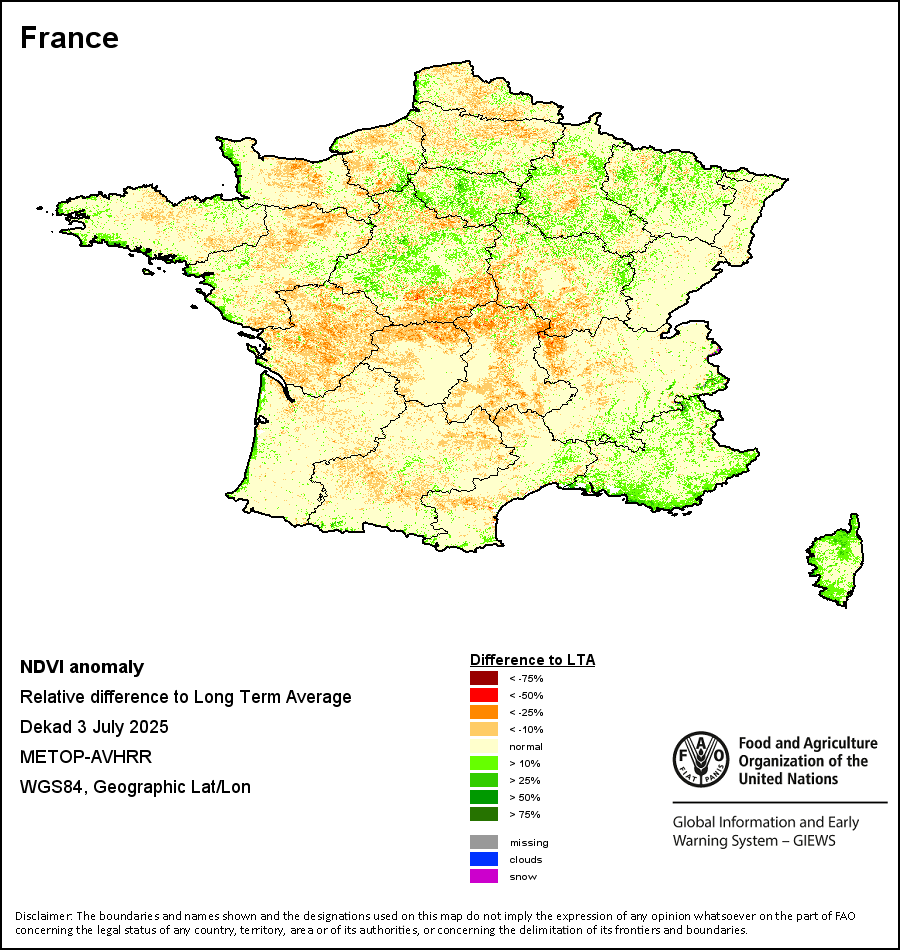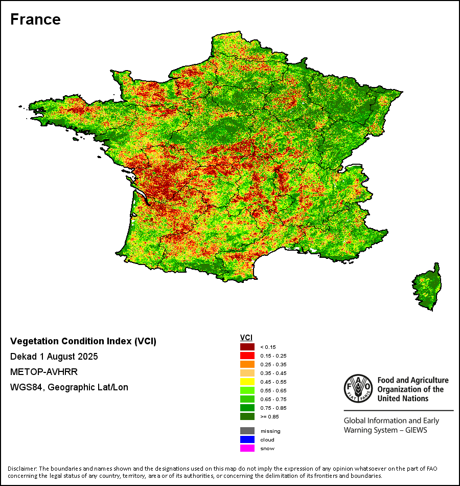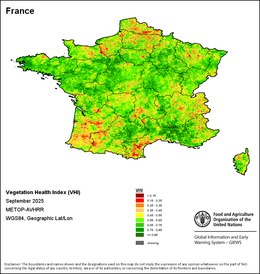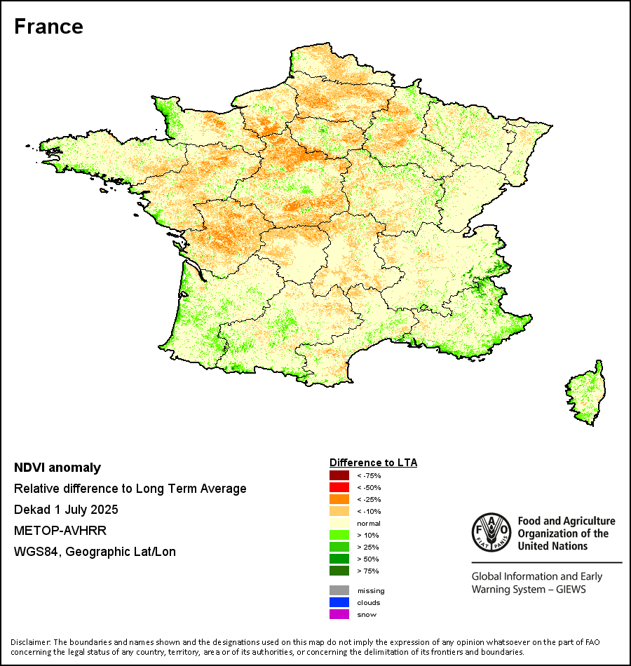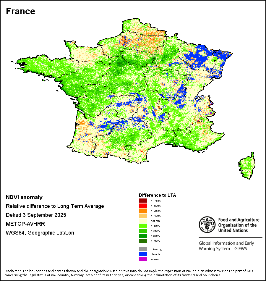 所有三项植被指标都是基于来自METOP-AVHRR遥感卫星分辨率1千米的10天(旬)植被数据(2007年及以后)得出的。1984-2006年期间的1千米分辨率数据得自NOAA-AVHRR16千米分辨率数据集。所有非洲国家的降水量估算(除佛得角和毛里求斯外)均取自NOAA/FEWSNet,其他国家则取自ECMWF。