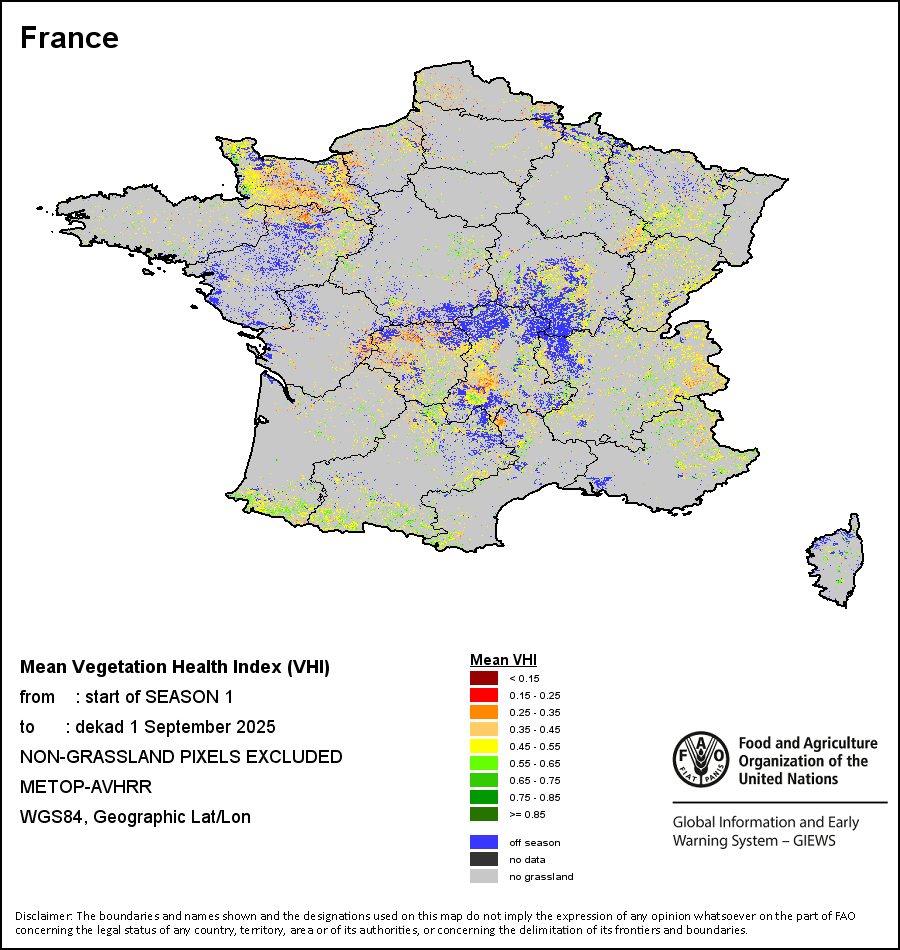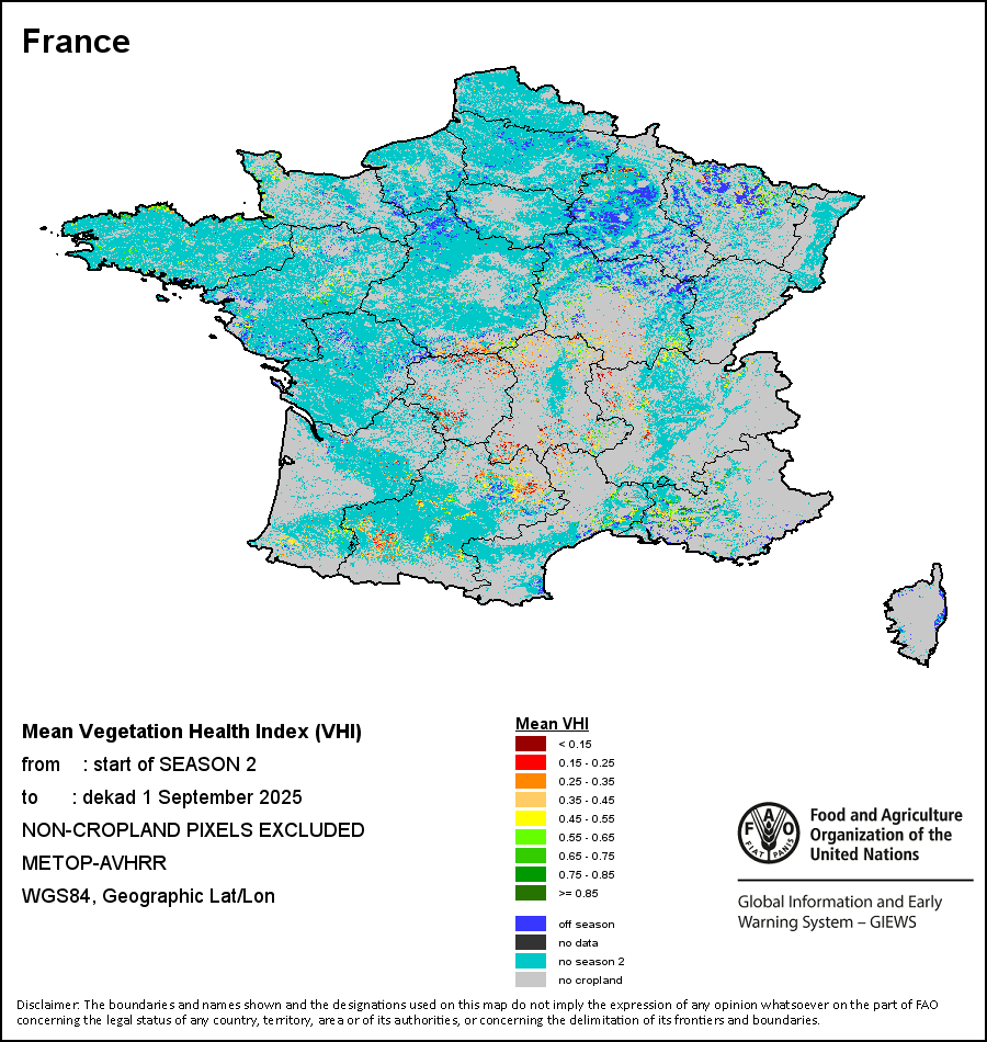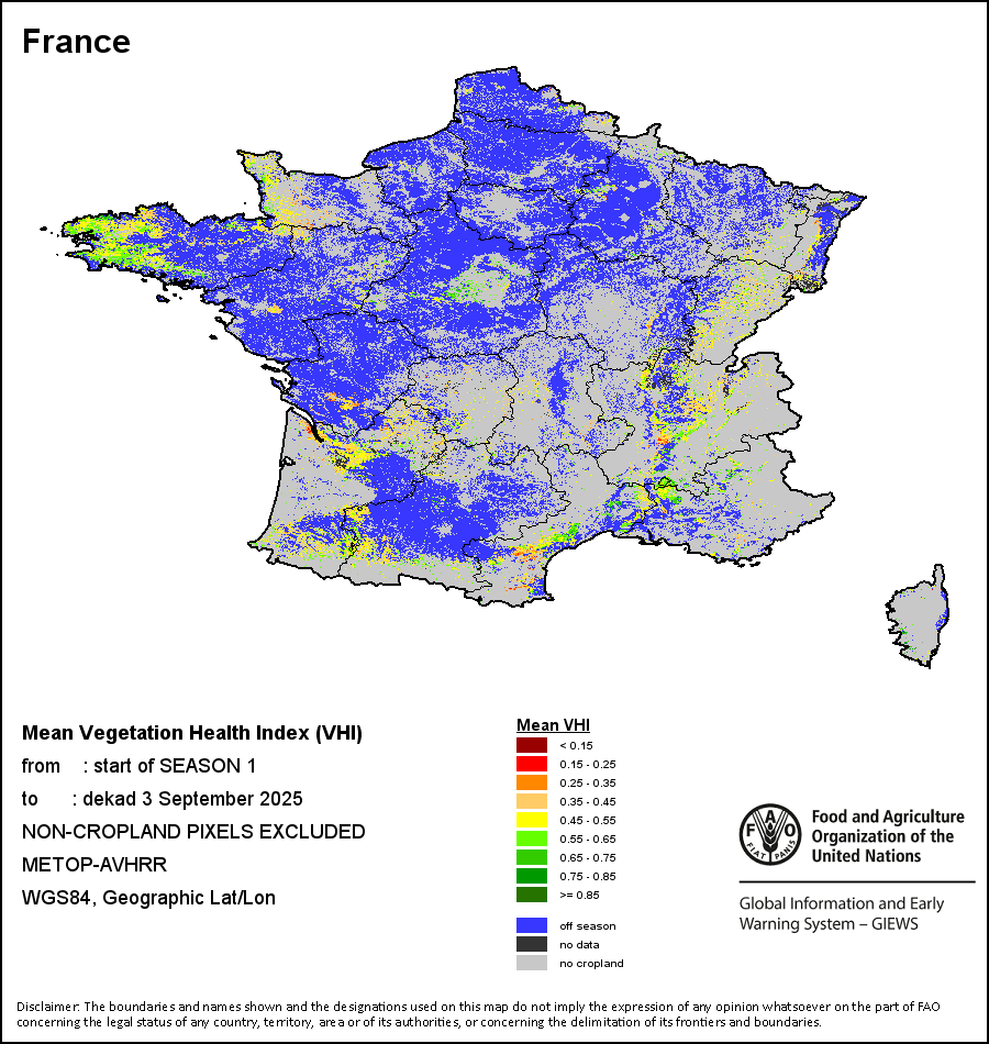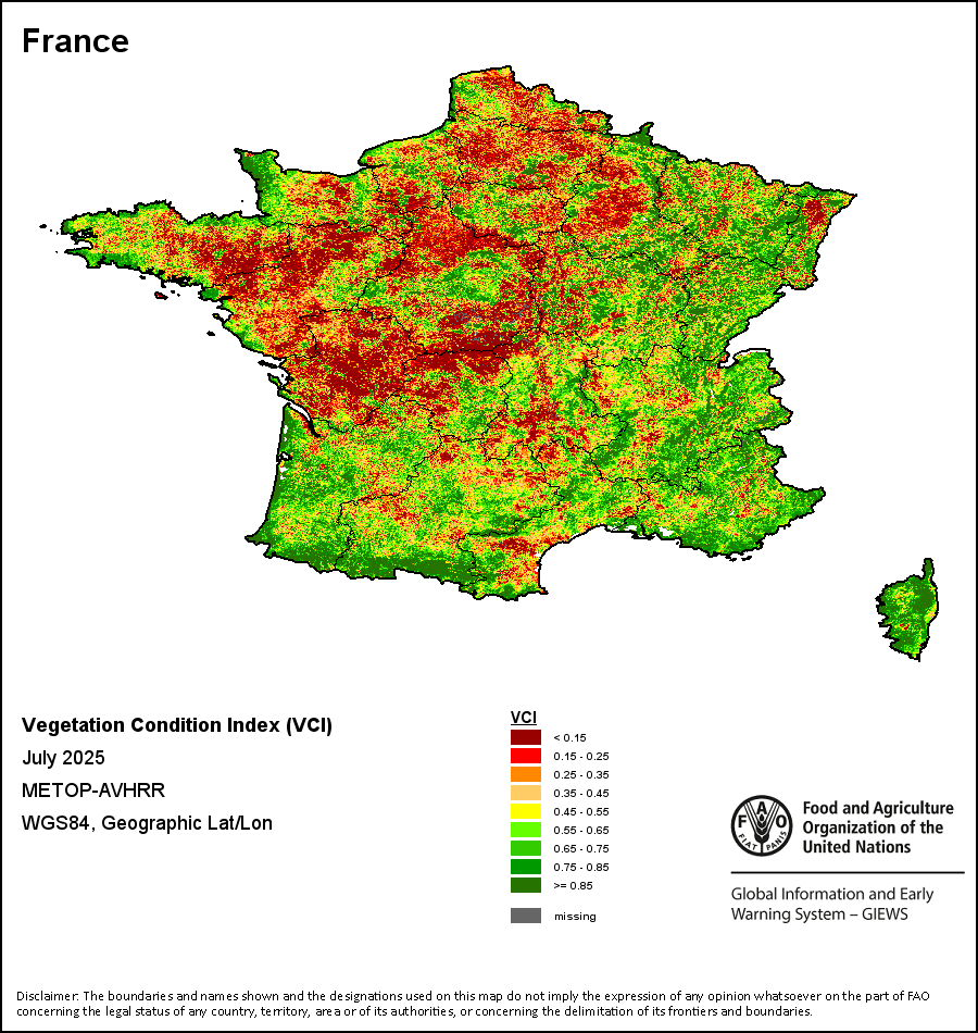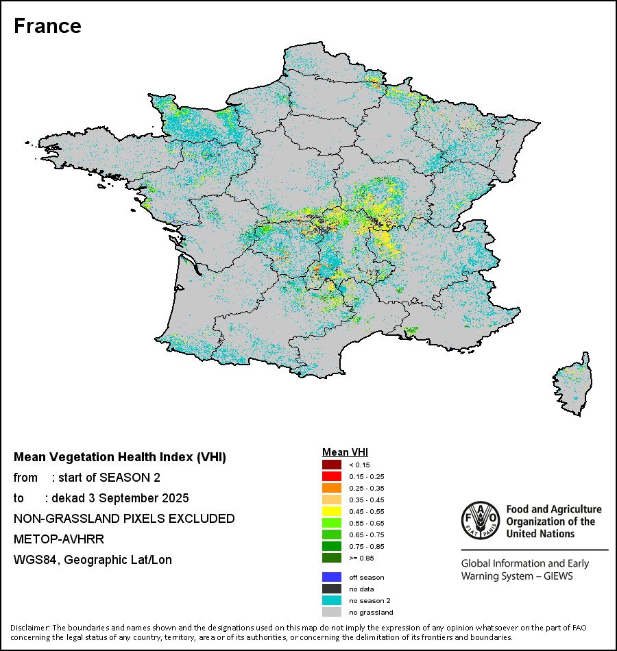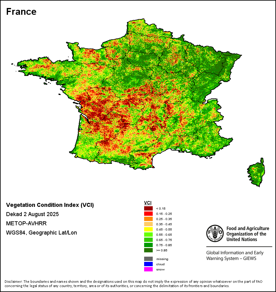 所有三项植被指标都是基于来自METOP-AVHRR遥感卫星分辨率1千米的10天(旬)植被数据(2007年及以后)得出的。1984-2006年期间的1千米分辨率数据得自NOAA-AVHRR16千米分辨率数据集。所有非洲国家的降水量估算(除佛得角和毛里求斯外)均取自NOAA/FEWSNet,其他国家则取自ECMWF。