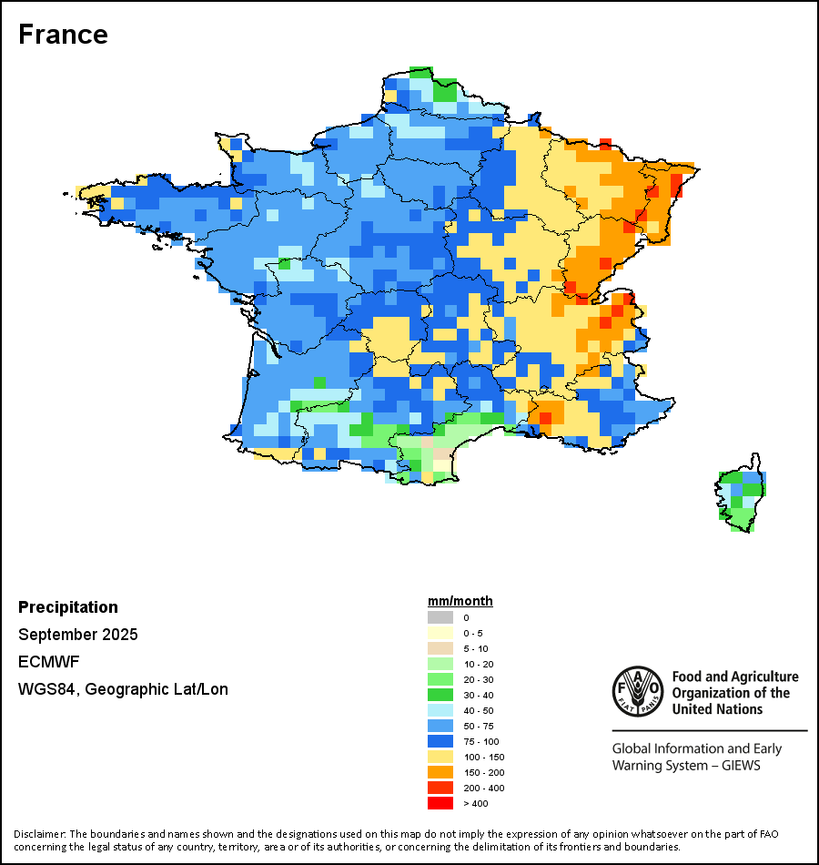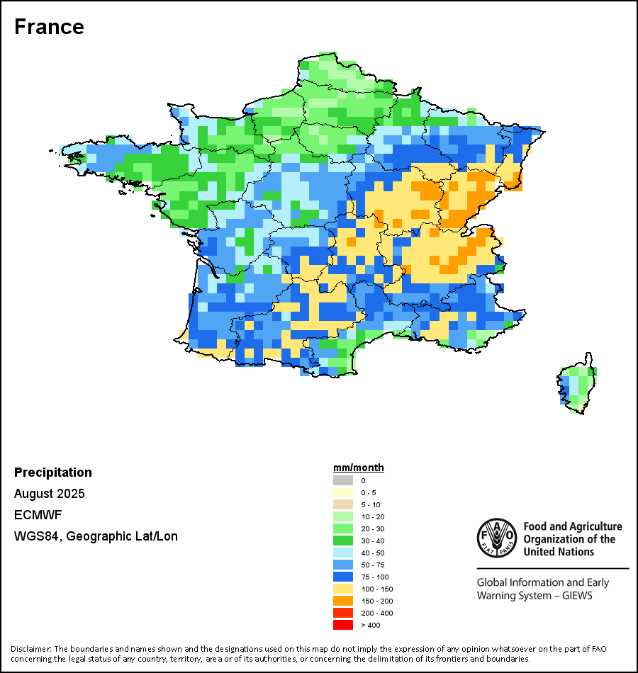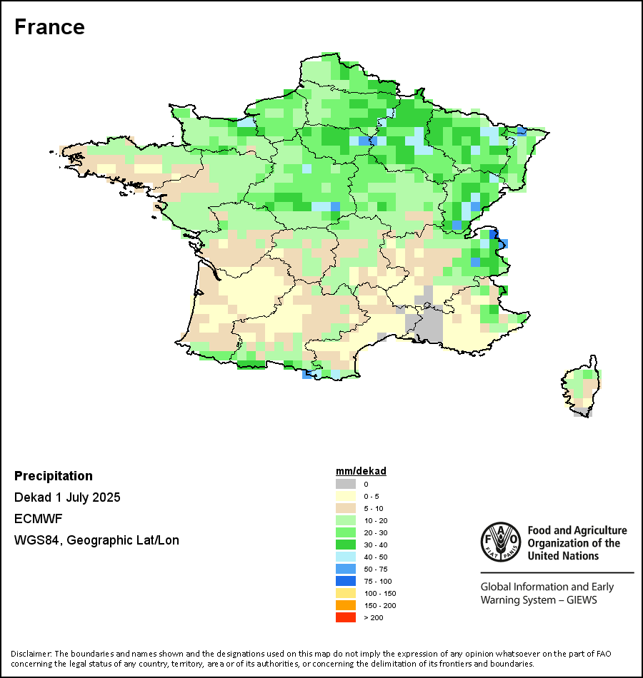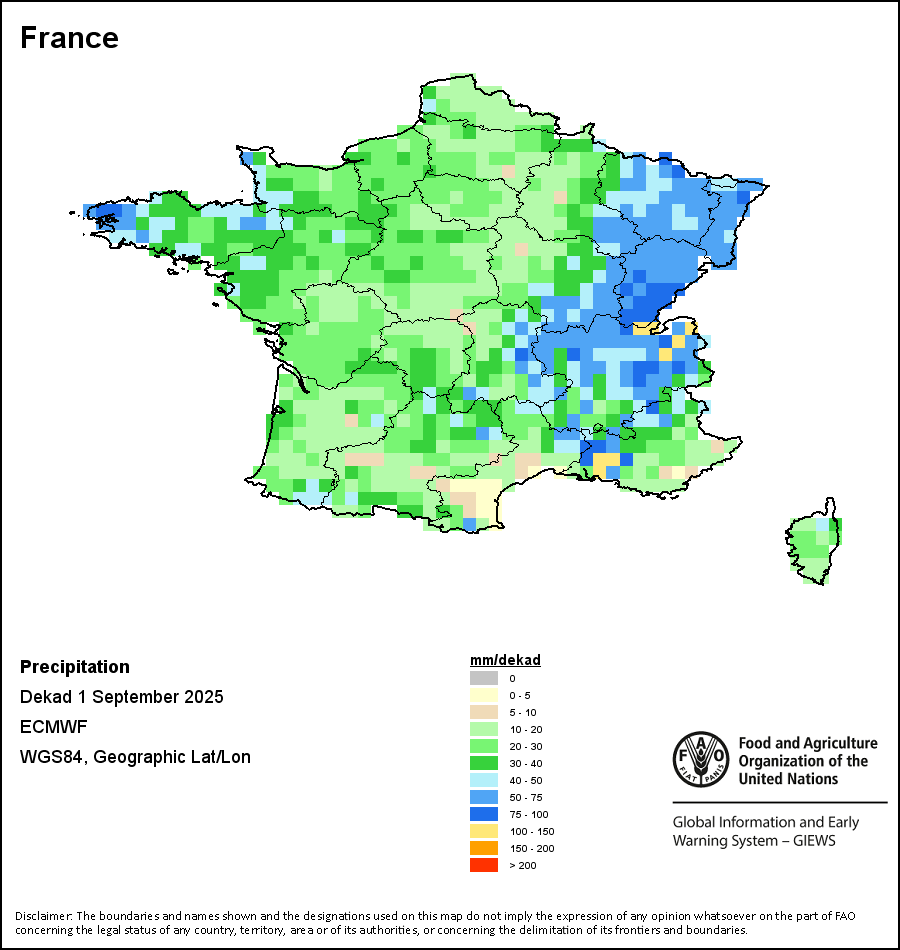 该图谱显示了每一旬(十天)的累积降水量。 所有非洲国家的降水量估算(除佛得角和毛里求斯外)均取自NOAA/FEWSNet,其他国家则取自ECMWF。