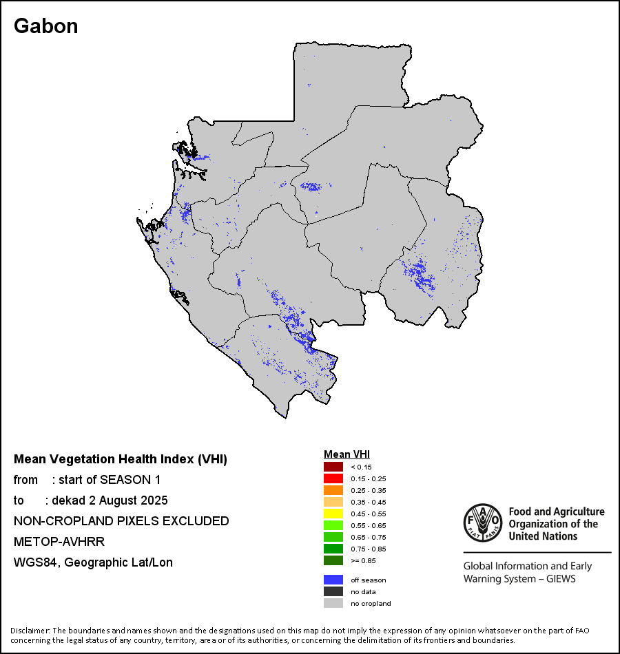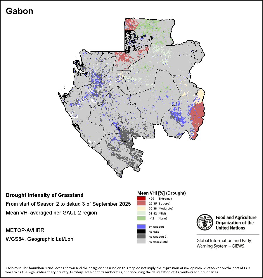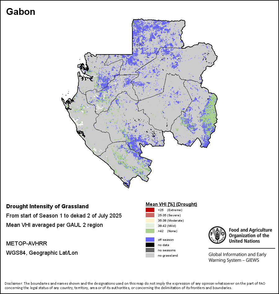 خضعت دراسة المؤشر الموحد لتباين الغطاء النباتي إلى مقارنة مع المعدل طويل الأجل (1984- 2015) وبيانات العام السابق على المستوى الإداري الأول.