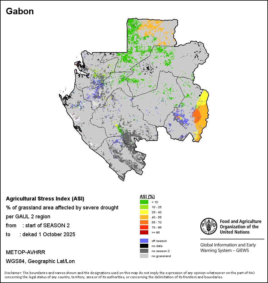 يصور مؤشر الإجهاد الزراعي السنوي النسبة المئوية من الأراضي الزراعية المتأثرة بالجفاف على امتداد الموسم الزراعي بأكمله ضمن منطقة إدارية ما. ويختلف هذا المؤشر السنوي عن مؤشر الإجهاد الزراعي الذي يعتمد على أحوال الجفاف منذ بداية الموسم وحتى فترة العشرة أيام الراهنة.