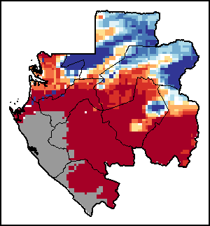 توضح الخريطة الاختلاف بين كمية الهطولات المطرية الراهنة ومعدلها. تقارَن مستويات الهطولات المطرية مع المعدل طويل الأجل الذي يشير إلى الفترة ما بين 1989-2015.