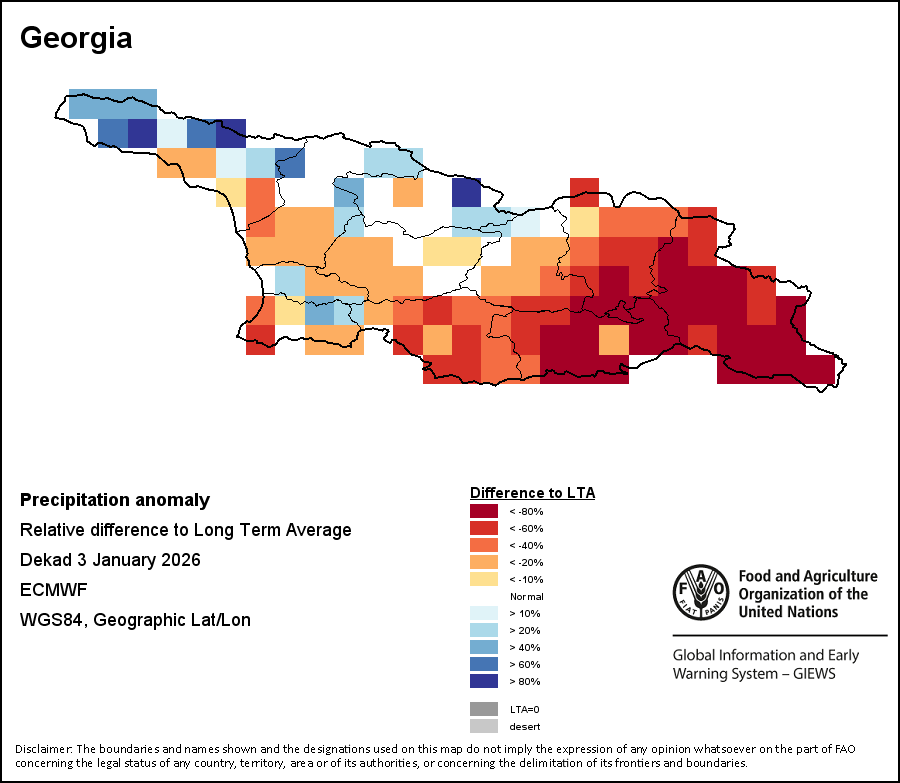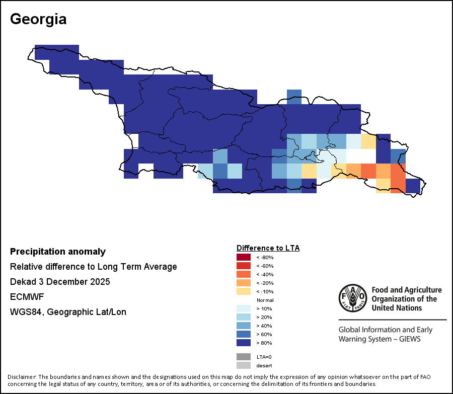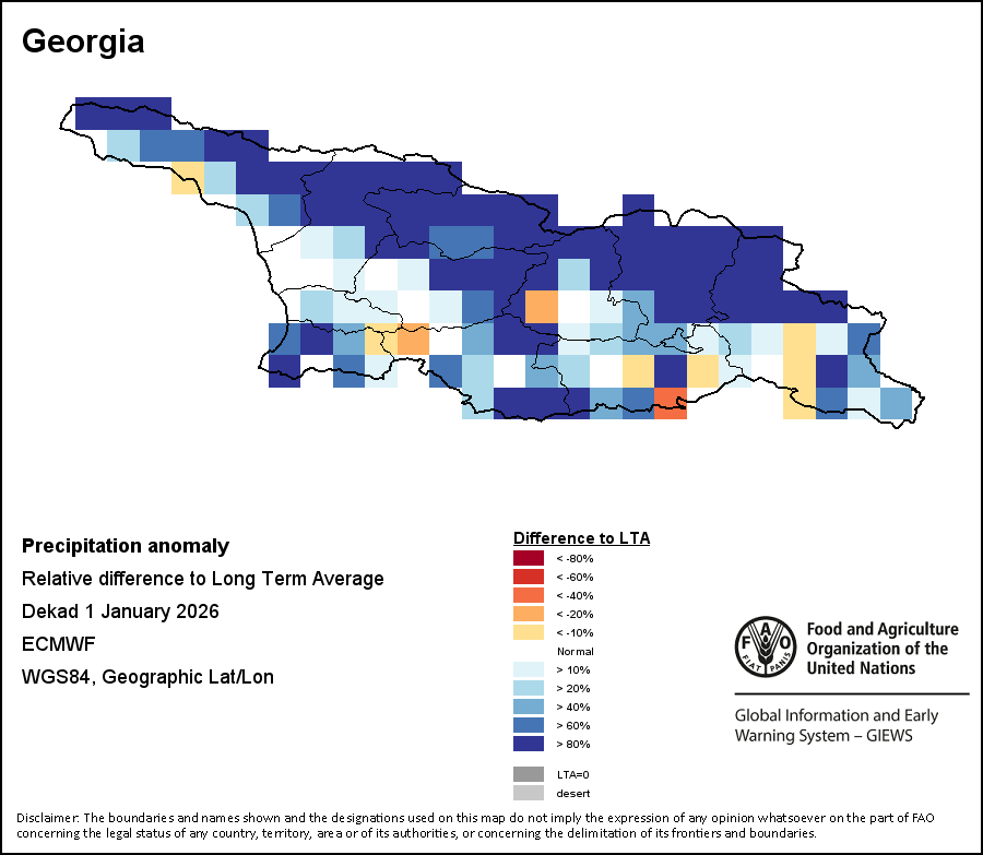 | Оценка уровня атмосферных осадков в сравнении с LTA (1989-2012 гг.) и предыдущим годом на административном уровне 1