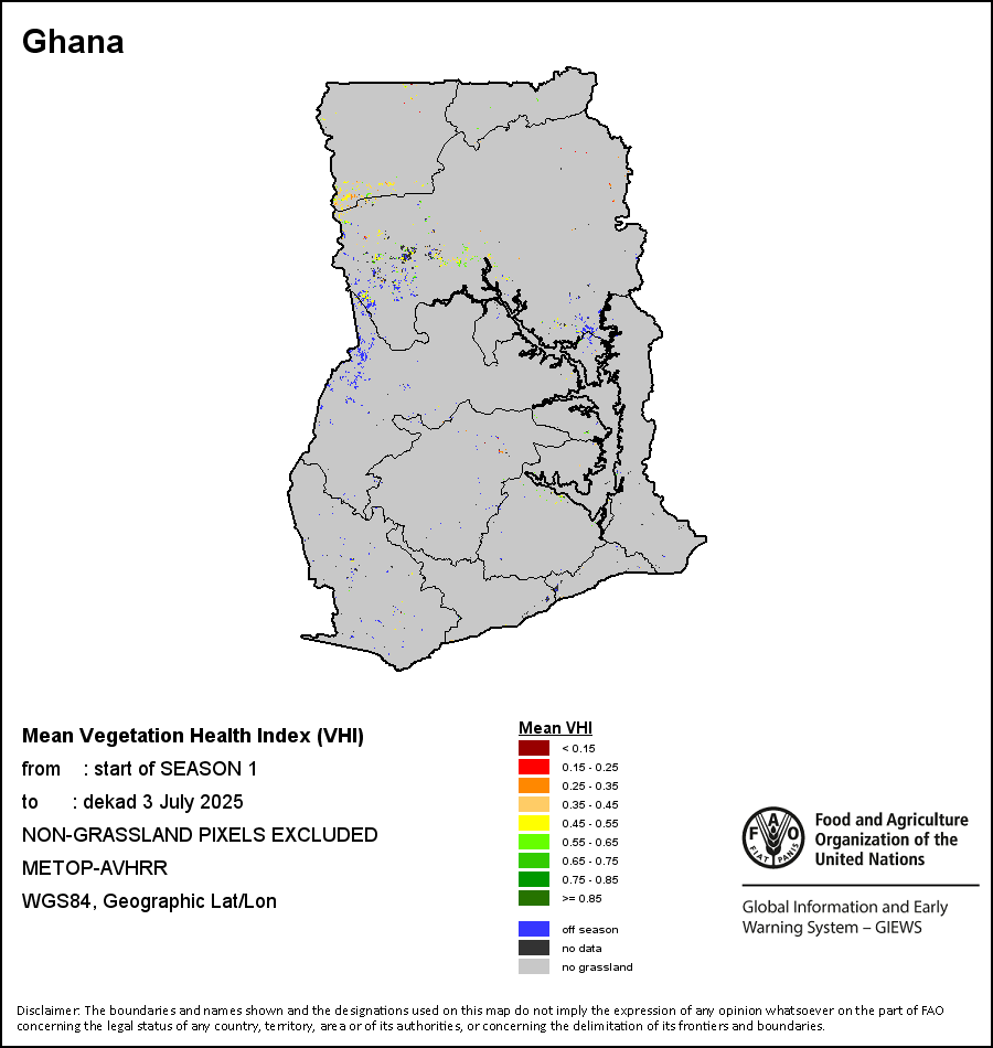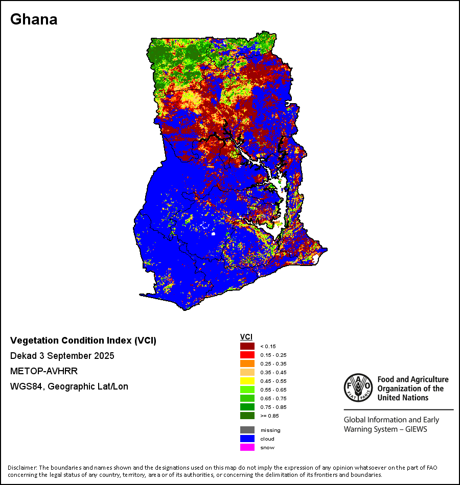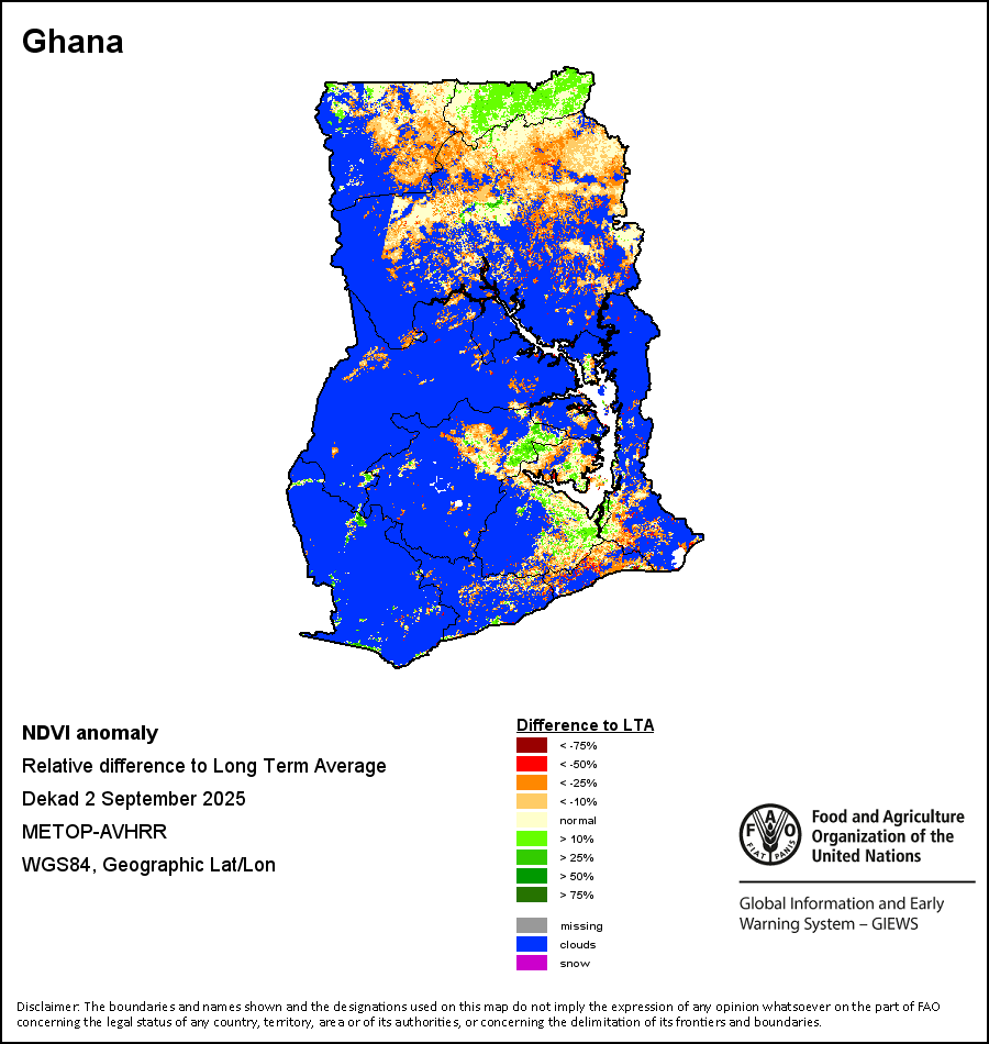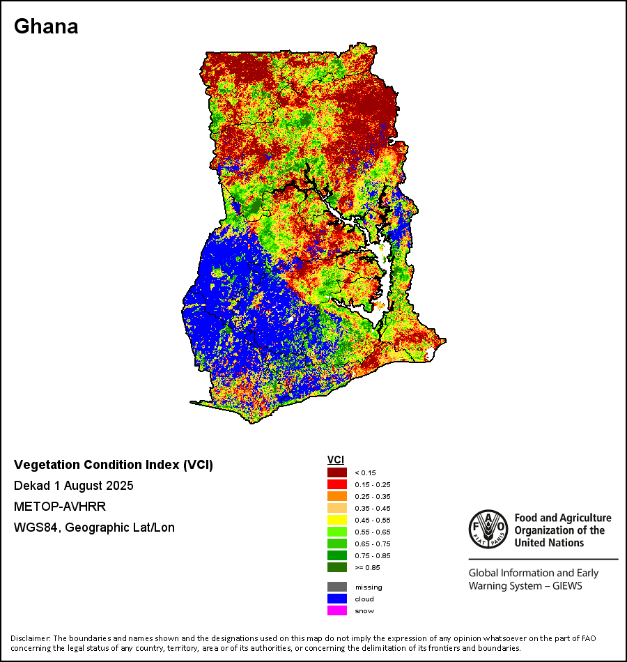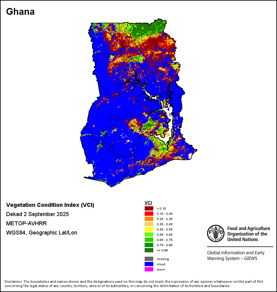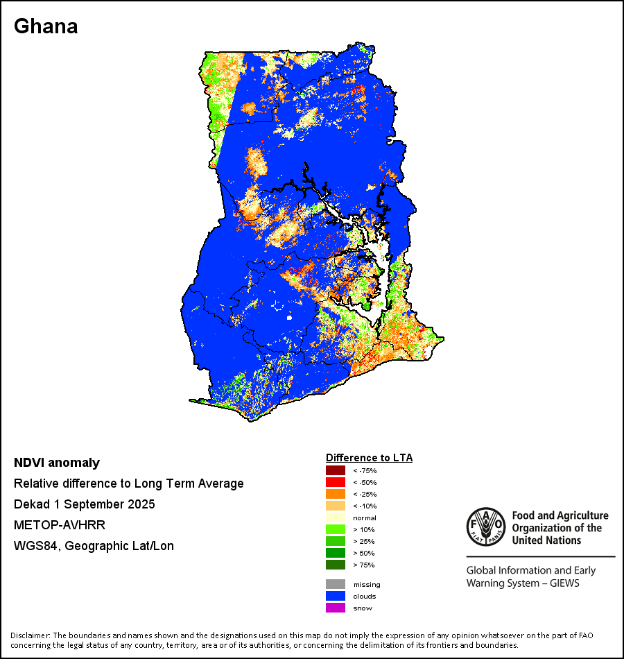 所有三项植被指标都是基于来自METOP-AVHRR遥感卫星分辨率1千米的10天(旬)植被数据(2007年及以后)得出的。1984-2006年期间的1千米分辨率数据得自NOAA-AVHRR16千米分辨率数据集。所有非洲国家的降水量估算(除佛得角和毛里求斯外)均取自NOAA/FEWSNet,其他国家则取自ECMWF。