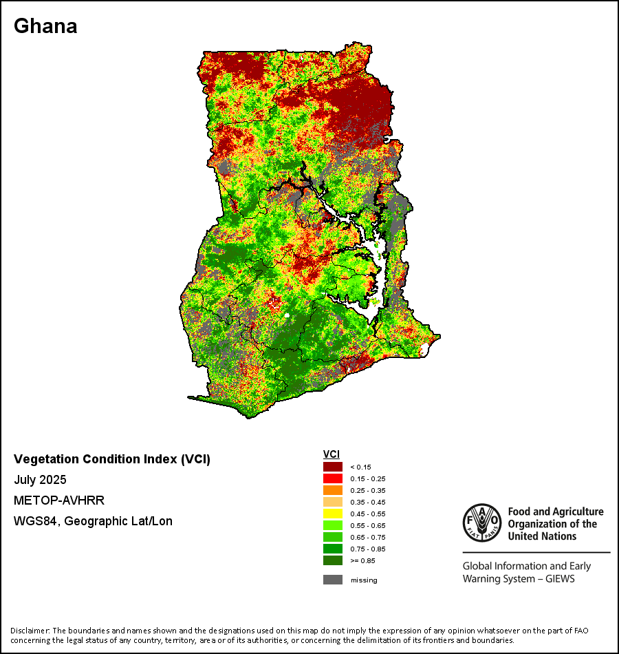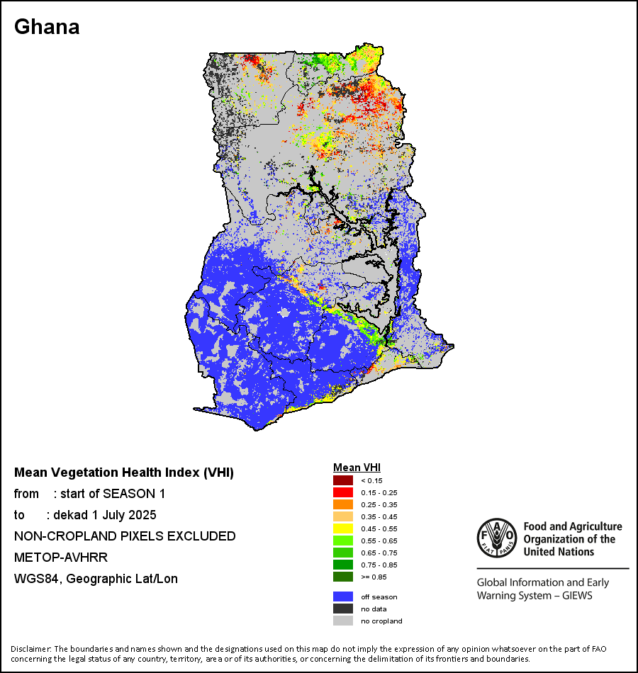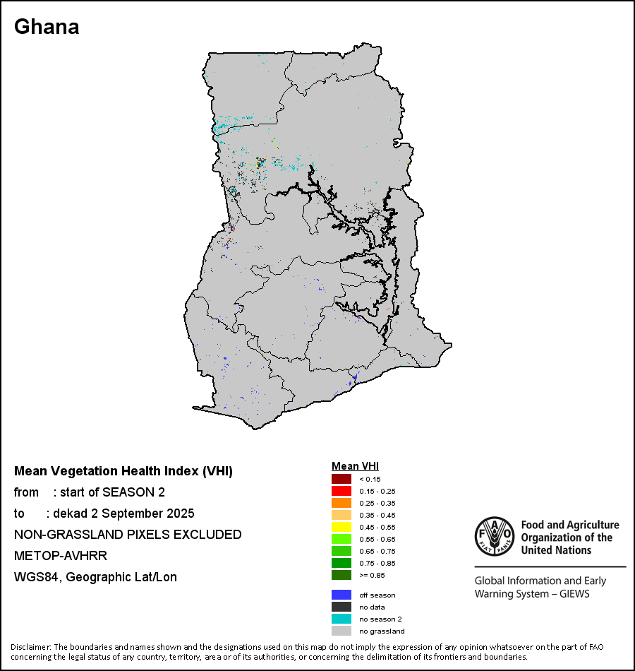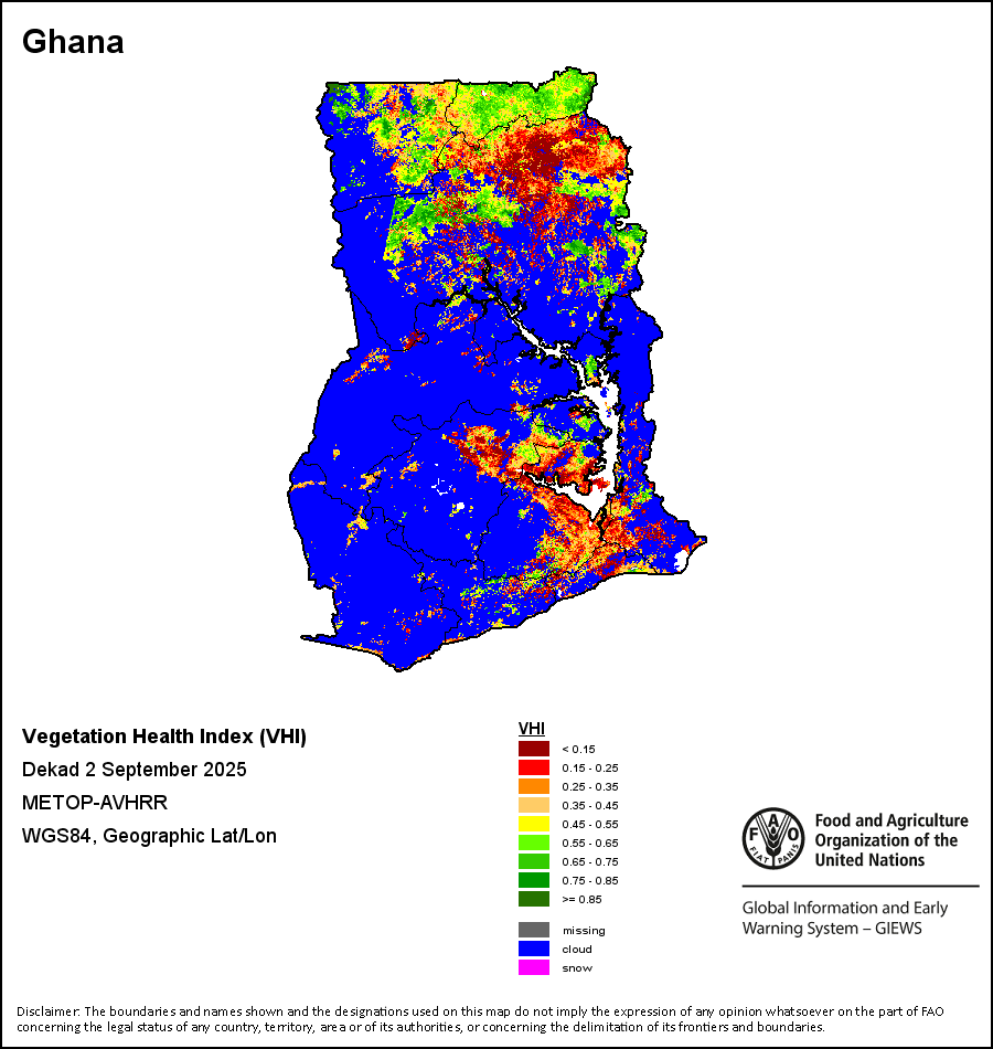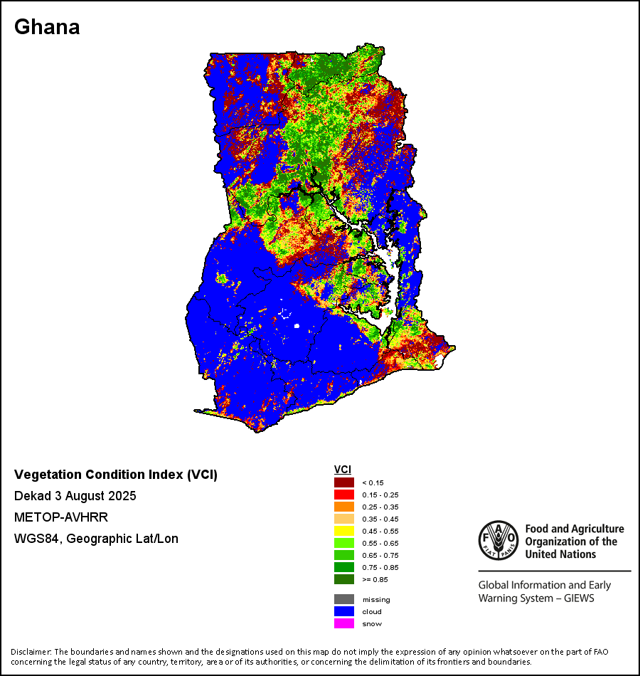 所有三项植被指标都是基于来自METOP-AVHRR遥感卫星分辨率1千米的10天(旬)植被数据(2007年及以后)得出的。1984-2006年期间的1千米分辨率数据得自NOAA-AVHRR16千米分辨率数据集。所有非洲国家的降水量估算(除佛得角和毛里求斯外)均取自NOAA/FEWSNet,其他国家则取自ECMWF。