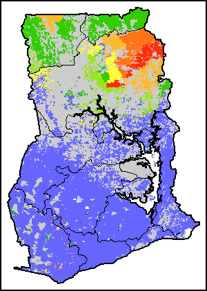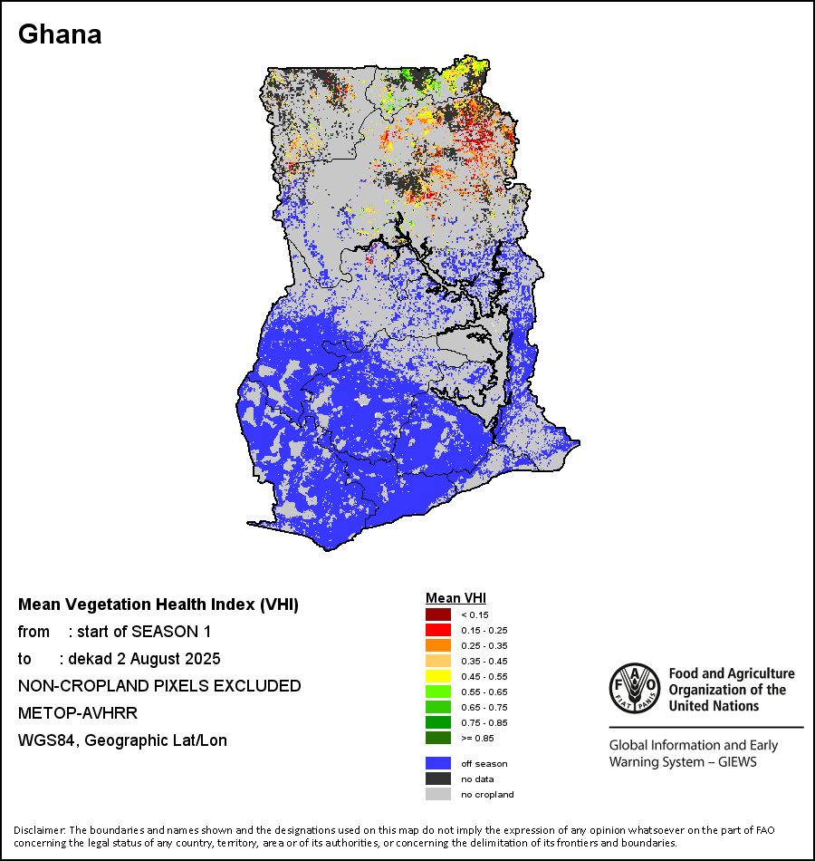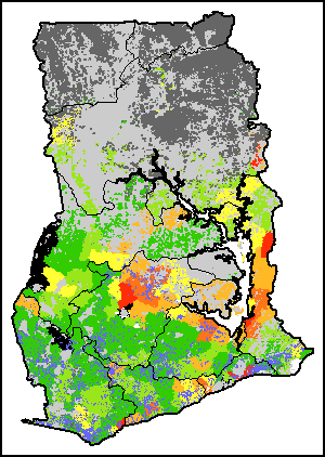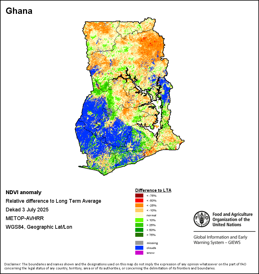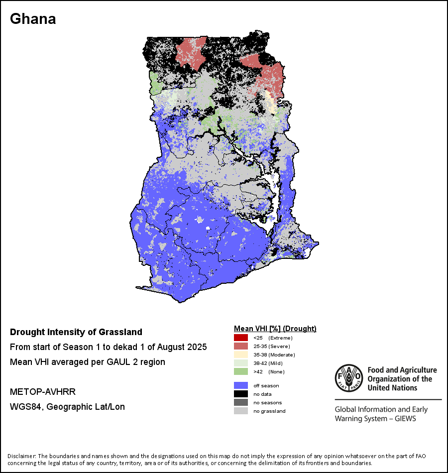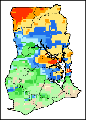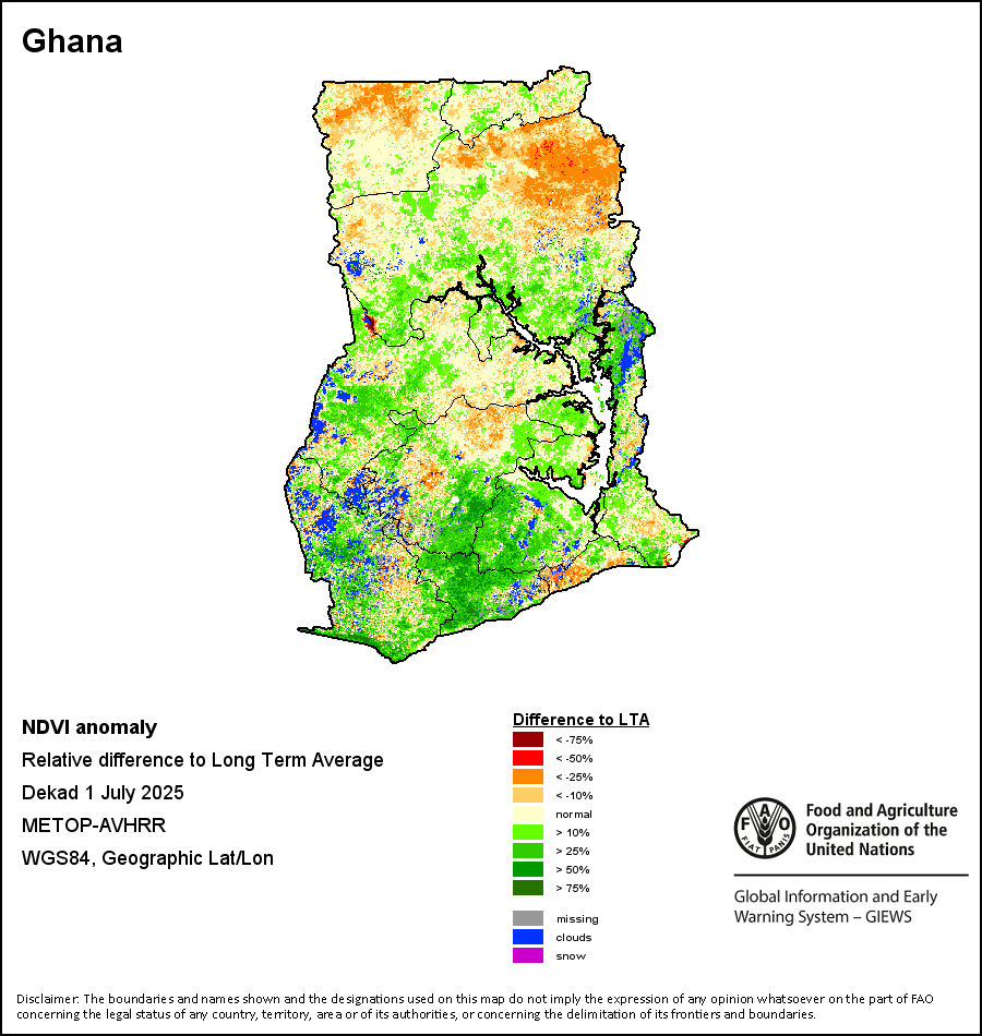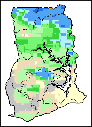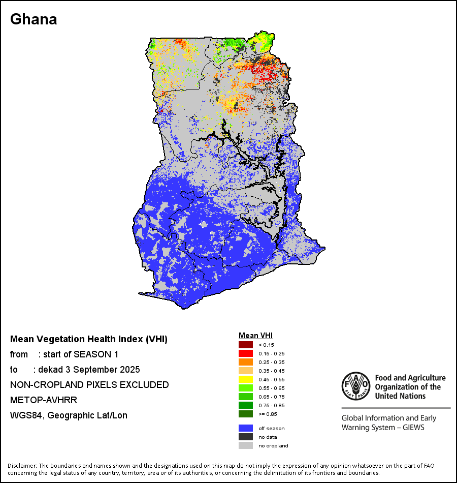所有三项植被指标都是基于来自METOP-AVHRR遥感卫星分辨率1千米的10天(旬)植被数据(2007年及以后)得出的。1984-2006年期间的1千米分辨率数据得自NOAA-AVHRR16千米分辨率数据集。所有非洲国家的降水量估算(除佛得角和毛里求斯外)均取自NOAA/FEWSNet,其他国家则取自ECMWF。