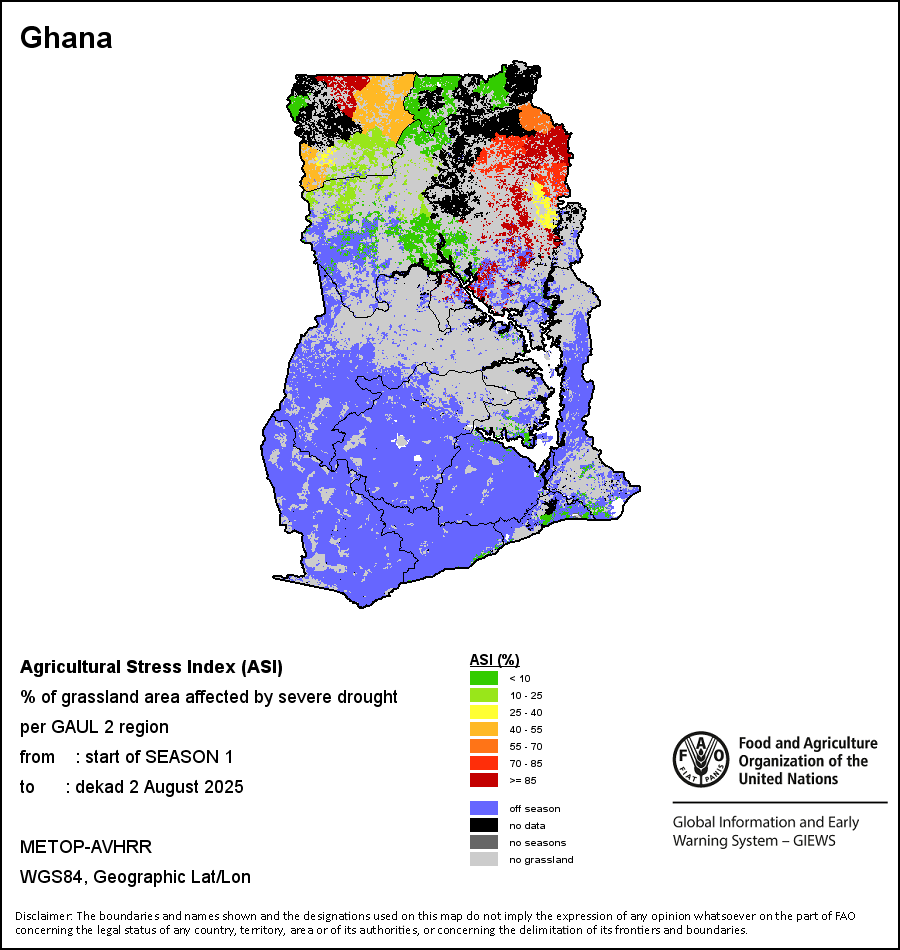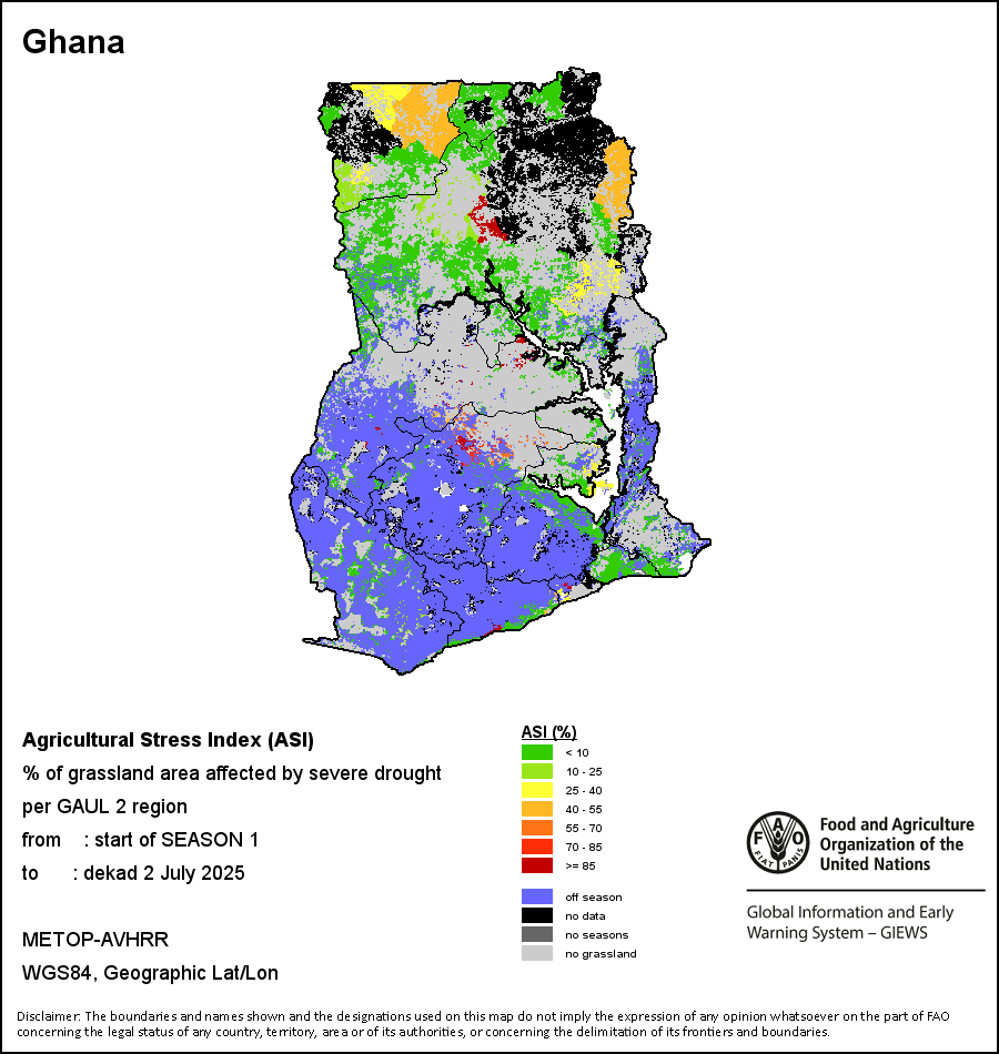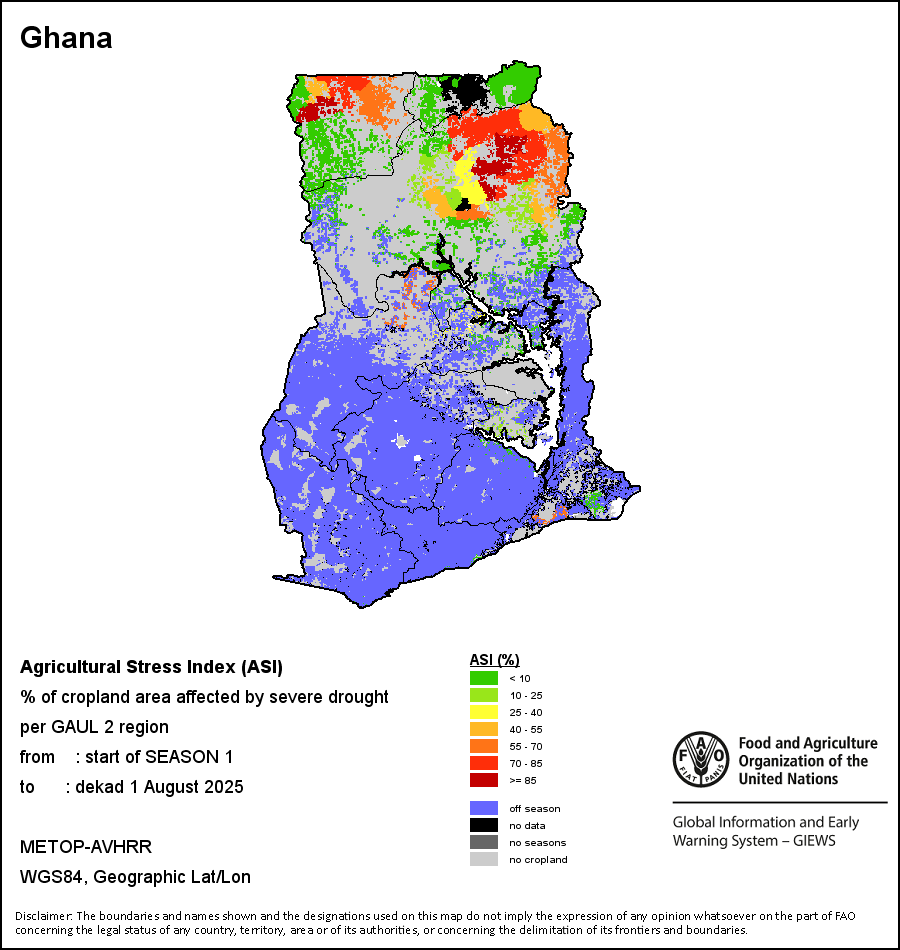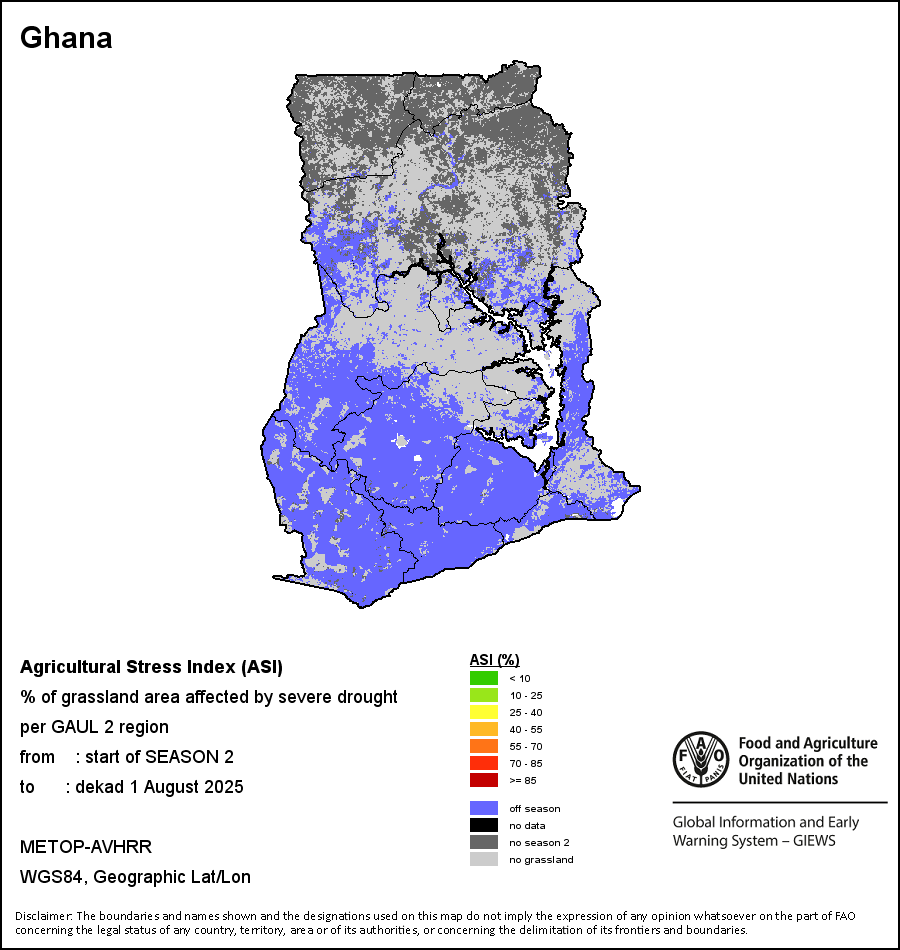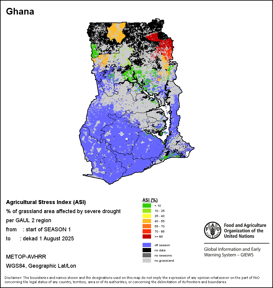 年度ASI显示的是某个行政区域内在整个农作季节受到旱情影响的耕地面积的百分比。 它与ASI的不同点在于ASI考查的是季节开局至当前十天的状况。
