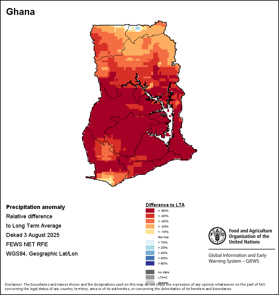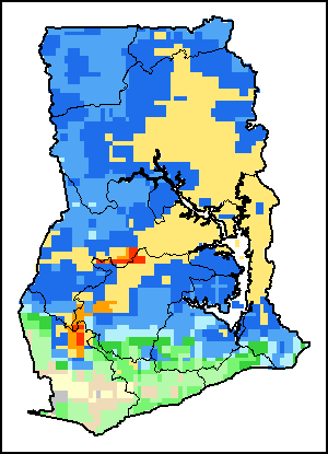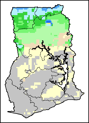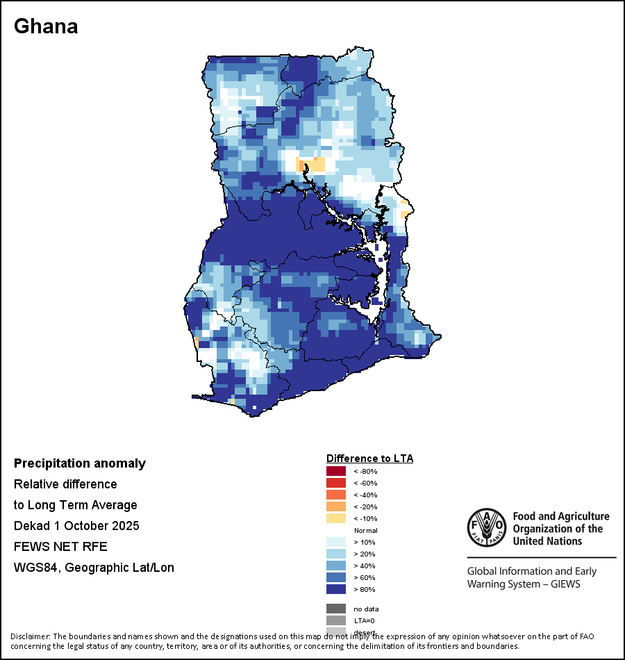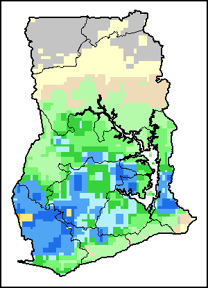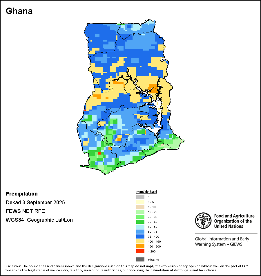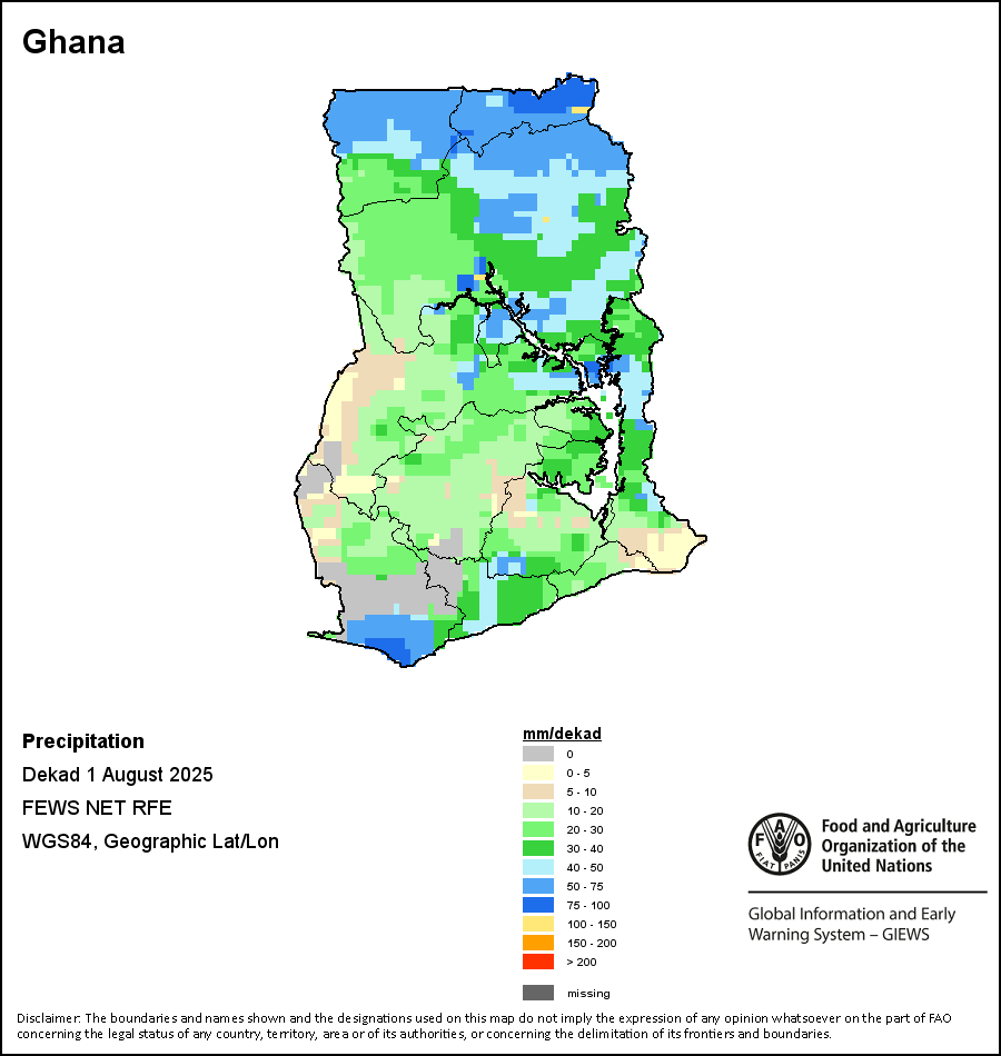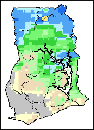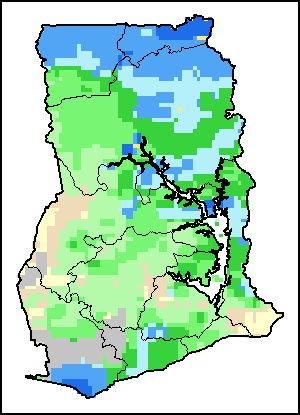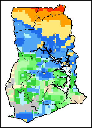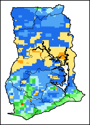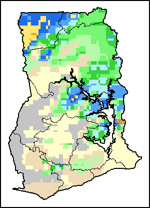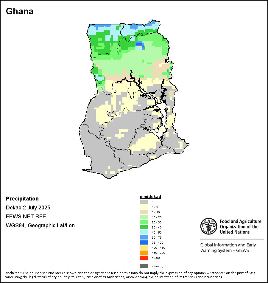 该图谱显示了每一旬(十天)的累积降水量。 所有非洲国家的降水量估算(除佛得角和毛里求斯外)均取自NOAA/FEWSNet,其他国家则取自ECMWF。