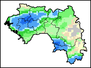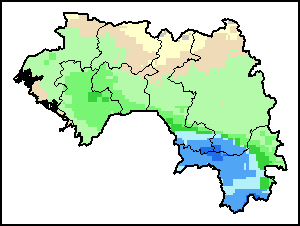 Les cartes et les graphiques au niveau des pays illustrent les indicateurs d’avancement de la campagne, de végétation et de pluviométrie au cours des 36 derniers mois. Les données sont présentées par décade et par mois. Les trois indicateurs de végétation sont basés sur les données relatives à la végétation pour 10 jours (décade) du capteur Metop-AVHRR par pixel de 1 km (à partir de 2007). Les données à 1 km de résolution pour la période 1984-2006 ont été dérivées des données du NOAA-AVHRR à 16 km de résolution. - Les estimations concernant les précipitations pour tous les pays africains (à l'exception du Cap Vert et de Maurice) proviennent du NOAA/FEWSNet, tandis que les données concernant les autres pays sont obtenues à partir du CEPMMT. Compte tenu de la résolution plus élevée des indicateurs de végétation (ex. NDVI, VHI) par rapport à celle des indicateurs de précipitations, plus grossiers, le nombre d’unités infranationales pour lesquelles des statistiques zonales valides peuvent être produites à partir des indices de végétation est, dans certains pays, supérieur à celui obtenu à partir des indicateurs de précipitations.