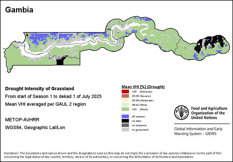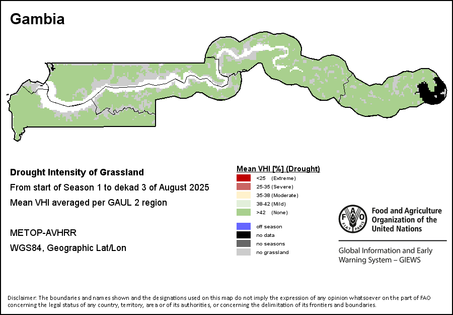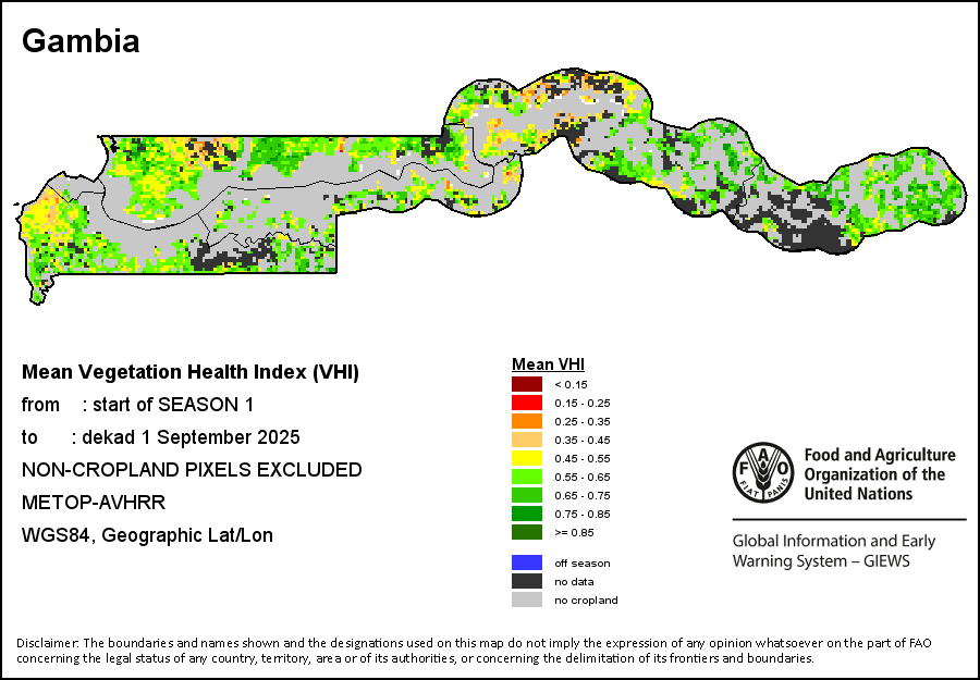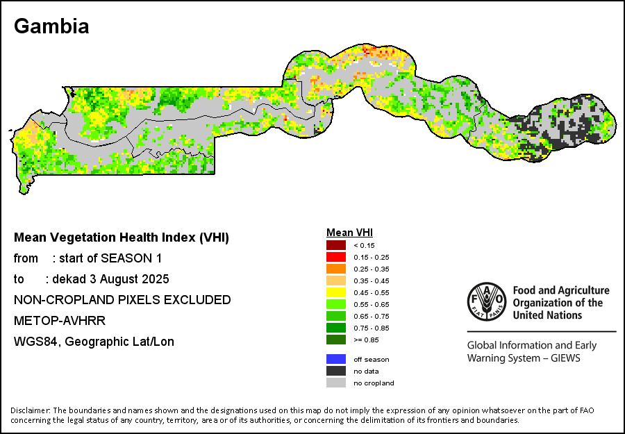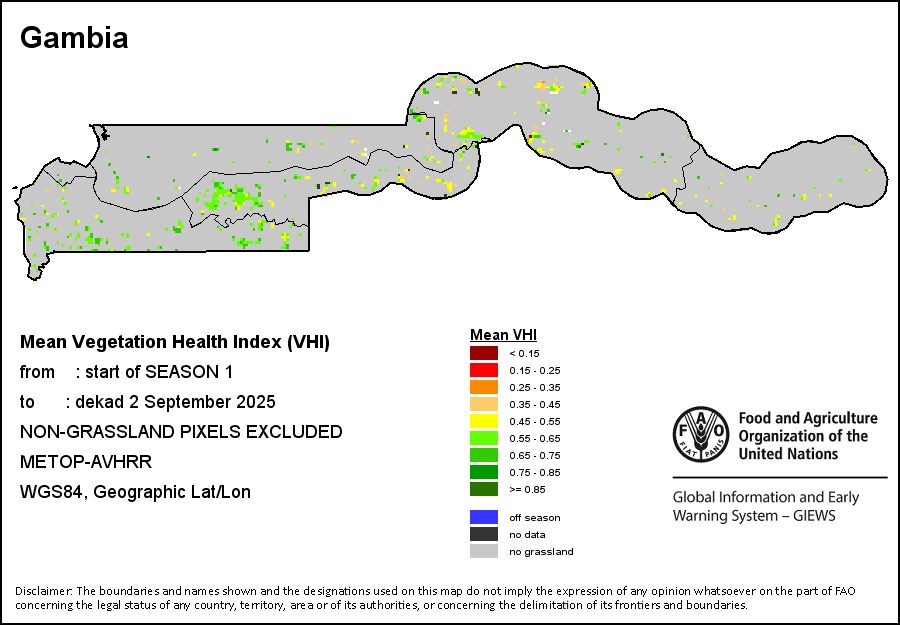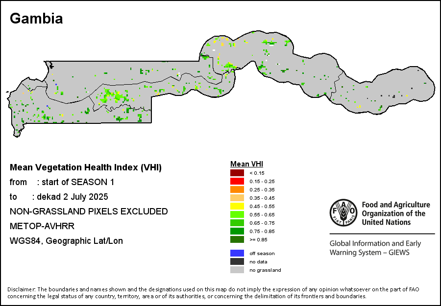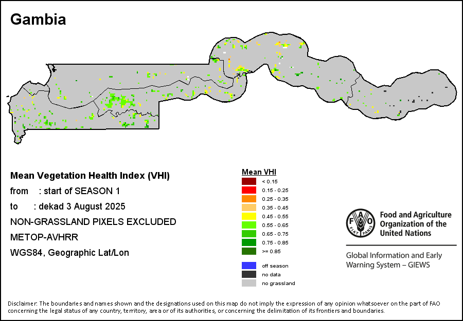 The country level maps and graphs depict the latest 36-month period of the seasonal, vegetation and precipitation indicators. The data is presented by dekad and month.   More