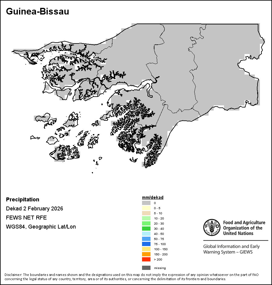 На карте изображены кумулятивные объемы осадков в декаду (10-дневный период). Оценки атмосферных осадков для всех африканских стран (за исключением Кабо-Верде и Маврикия) получены из системы NOAA/Системы раннего предупреждения об опасности голода, а по остальным странам данные получены из системы ECMWF.