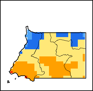 该图谱显示了当前降水量与平均水平之间的差异。 由降水量水平与长期平均值(LTA)进行比较得出,长期平均值系指1989-2015年期间的数值。暖色调指示的是降水量低于平均水平的地区,而冷色调指示的则是降水量高于平均水平的地区。降雨量估算数据来自欧洲中期天气预报这些(ECMWF)。