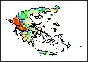 خضعت دراسة المؤشر الموحد لتباين الغطاء النباتي إلى مقارنة مع المعدل طويل الأجل (1984- 2015) وبيانات العام السابق على المستوى الإداري الأول.