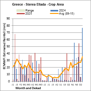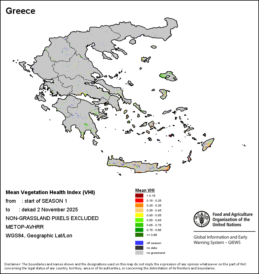 The country level maps and graphs depict the latest 36-month period of the seasonal, vegetation and precipitation indicators. The data is presented by dekad and month. All three vegetation indicators are based on 10-day (dekadal) vegetation data from the METOP-AVHRR sensor at 1 km resolution (2007 and after). Data at 1 km resolution for the period 1984-2006 are derived from the NOAA-AVHRR dataset at 16 km resolution. Precipitation estimates for all African countries (except Cabo Verde and Mauritius) are taken from NOAA/FEWSNet (16 km resolution), while for the remaining countries data is obtained from ECMWF (25 km resolution). Owing to the higher resolution of vegetation indicators (e.g., NDVI, VHI) compared to coarser precipitation indicators, the number of sub-national units for which valid zonal statistics can be generated for vegetation indices is greater than the number of units for precipitation indicators for certain countries.