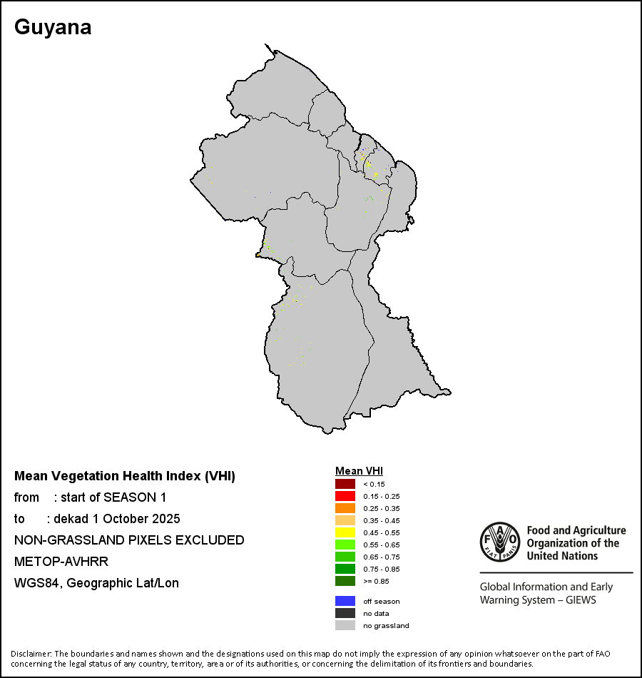 The country level maps and graphs depict the latest 36-month period of the seasonal, vegetation and precipitation indicators. The data is presented by dekad and month.   More