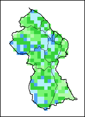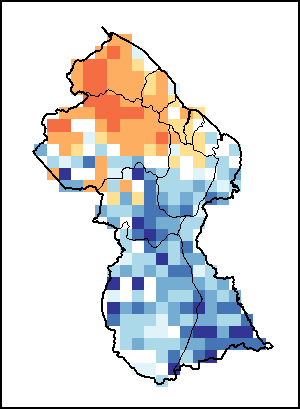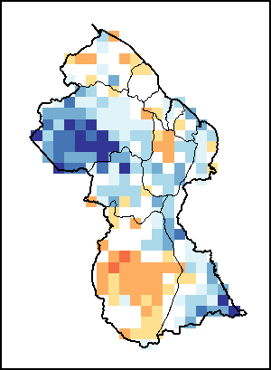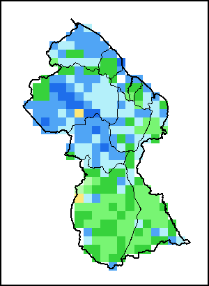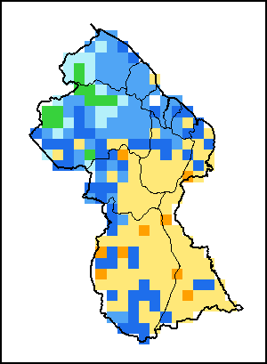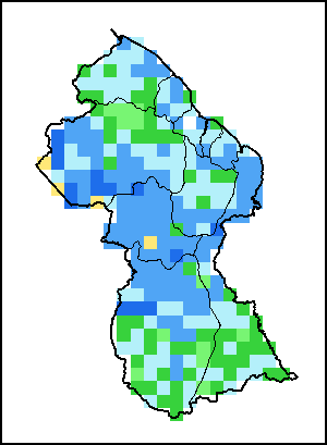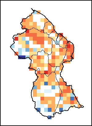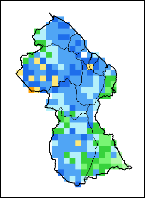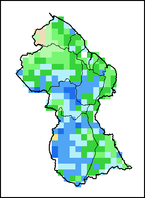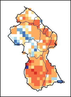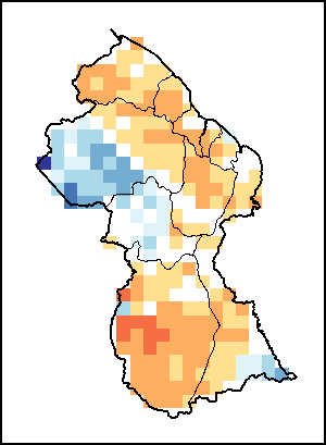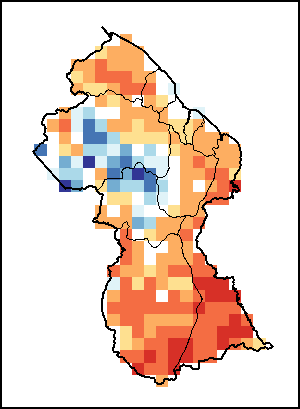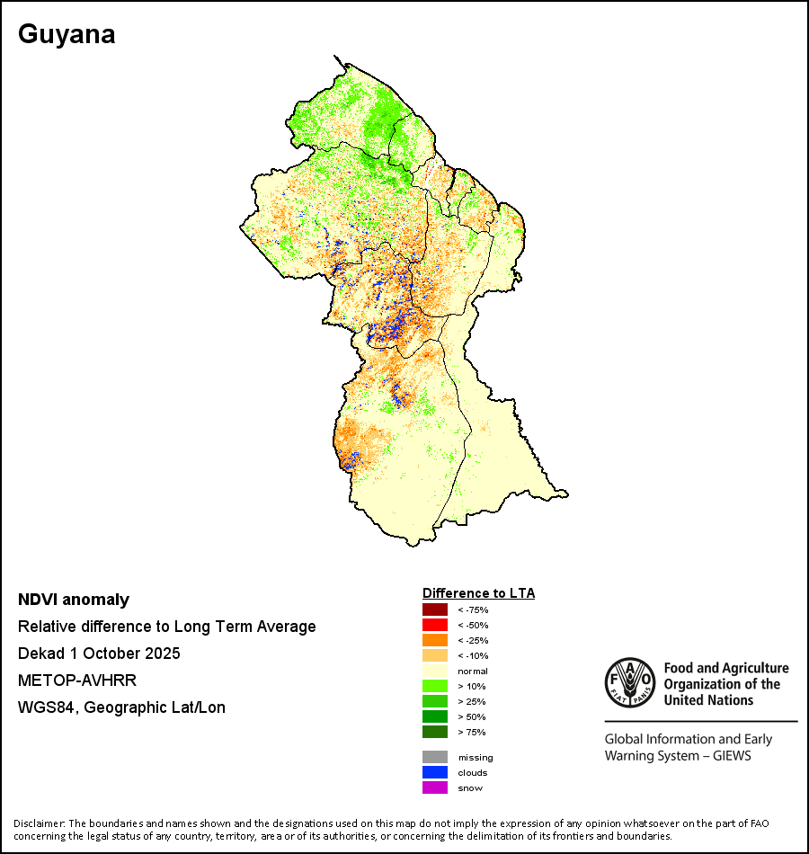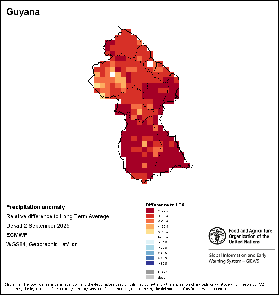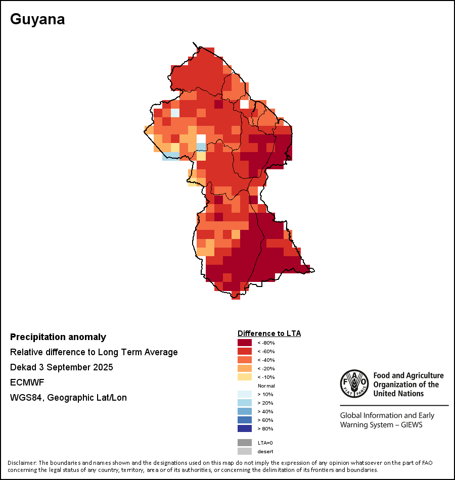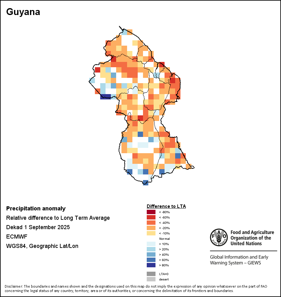 The map illustrates the difference between the current rainfall volume and the average level. Rainfall levels are compared with the Long-Term Average (LTA), which refers to the period 1989-2015. Warmer colours identify areas which have received lower-than-average rainfall, while colder colours are given to areas where precipitation has been above average.