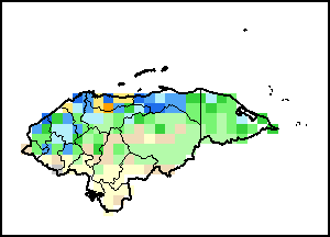 El Índice Normalizado Diferencial de la Vegetación (NDVI, por sus siglas en inglés) mide el “verdor” de la cubierta vegetal, y se utiliza como indicador de la densidad y salud de la vegetación. Los valores del NDVI oscilan entre +1 y -1. Los valores positivos elevados corresponden a vegetación densa y saludable, mientras que los valores bajos y/o negativos reflejan condiciones deficientes de vegetación o cubierta vegetal escasa. La anomalía del NDVI representa la variación del periodo actual de 10 días con respecto al valor medio a largo plazo. Un valor positivo (por ejemplo, 20 por ciento) implicaría mejores condiciones de vegetación con respecto a la media, mientras que un valor negativo (por ejemplo, -40 por ciento) indicaría condiciones de vegetación comparativamente peores.