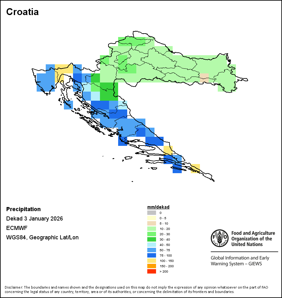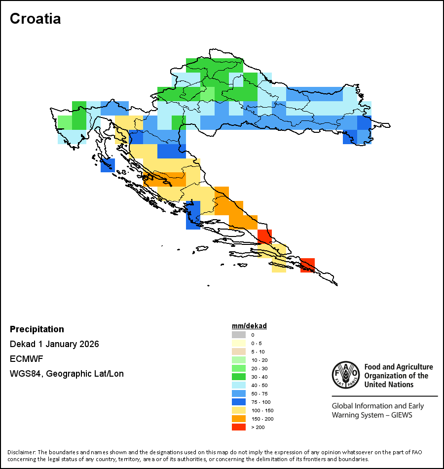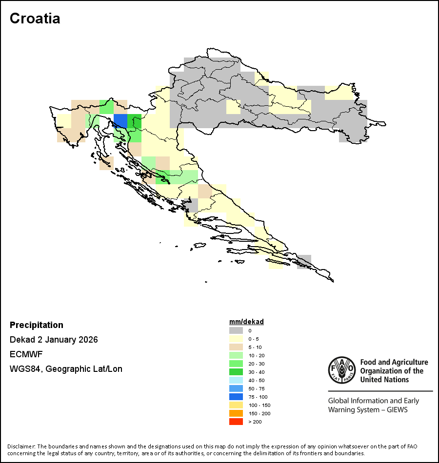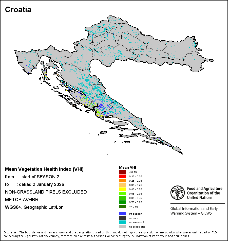 Los mapas y gráficos nacionales representan el último periodo de 36 meses de los indicadores estacionales, de vegetación y de precipitación. Los datos se presentan por periodos de 10 días y por meses. Los tres indicadores de vegetación se basan en datos de vegetación registrados cada diez días por el sensor METOP-AVHRR con una resolución de 1km (2007 y posterior). Los datos con una resolución de 1km del período 1984-2006 se extrapolaron a partir del conjunto de datos NOAA-AVHRR con 16km de resolución. Las estimaciones de precipitación de todos los países africanos (excepto Cabo Verde y Mauricio) se obtienen de NOAA/FEWSNet (16km de resolución), mientras que para los restantes países los datos se obtienen Centro Europeo de Predicción Meteorológica a Plazo Medio (ECMWF siglas en Inglés, 25km de resolución). Debido a la mayor resolución de los indicadores de vegetación (p.ej., NDVI, VHI) en comparación con los indicadores de precipitación de resolución más gruesa, el número de unidades subnacionales para las que se pueden generar estadísticas zonales válidas para los índices de vegetación es mayor que el número de unidades para los indicadores de precipitación en algunos países.