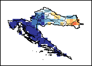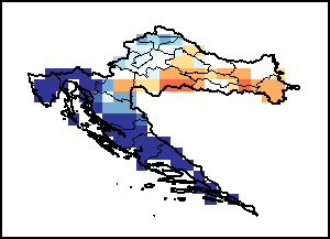 El mapa refleja la diferencia entre el volumen actual de precipitaciones y el nivel medio. Los niveles de precipitación se comparan con el valor medio a largo plazo, correspondiente al periodo 1989-2015. Los colores más cálidos representan zonas con precipitaciones inferiores a la media, mientras que los colores más fríos se asignan a aquellas zonas con precipitaciones superiores a la media.