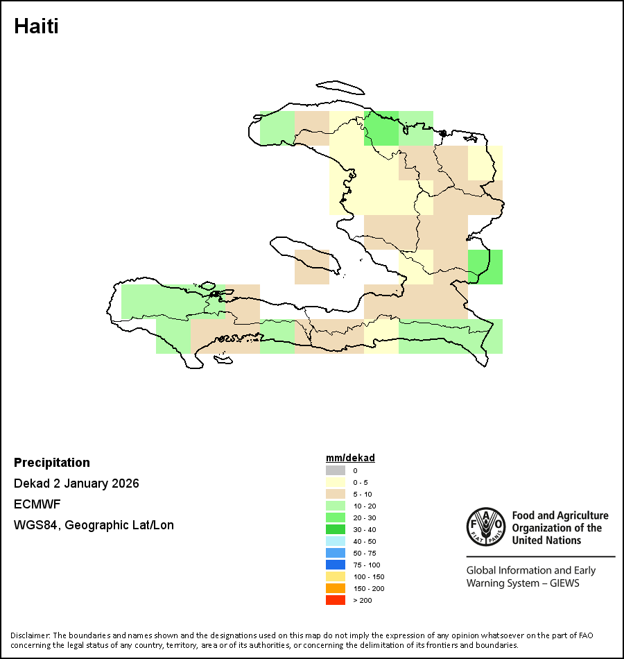 Los mapas y gráficos nacionales representan el último periodo de 36 meses de los indicadores estacionales, de vegetación y de precipitación. Los datos se presentan por periodos de 10 días y por meses. Los tres indicadores de vegetación se basan en datos de vegetación registrados cada diez días por el sensor METOP-AVHRR con una resolución de 1km (2007 y posterior). Los datos con una resolución de 1km del período 1984-2006 se extrapolaron a partir del conjunto de datos NOAA-AVHRR con 16km de resolución. Las estimaciones de precipitación de todos los países africanos (excepto Cabo Verde y Mauricio) se obtienen de NOAA/FEWSNet (16km de resolución), mientras que para los restantes países los datos se obtienen Centro Europeo de Predicción Meteorológica a Plazo Medio (ECMWF siglas en Inglés, 25km de resolución). Debido a la mayor resolución de los indicadores de vegetación (p.ej., NDVI, VHI) en comparación con los indicadores de precipitación de resolución más gruesa, el número de unidades subnacionales para las que se pueden generar estadísticas zonales válidas para los índices de vegetación es mayor que el número de unidades para los indicadores de precipitación en algunos países.