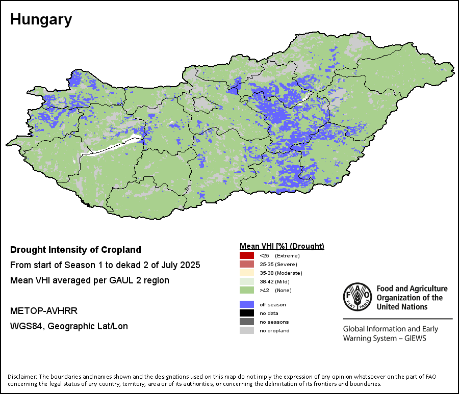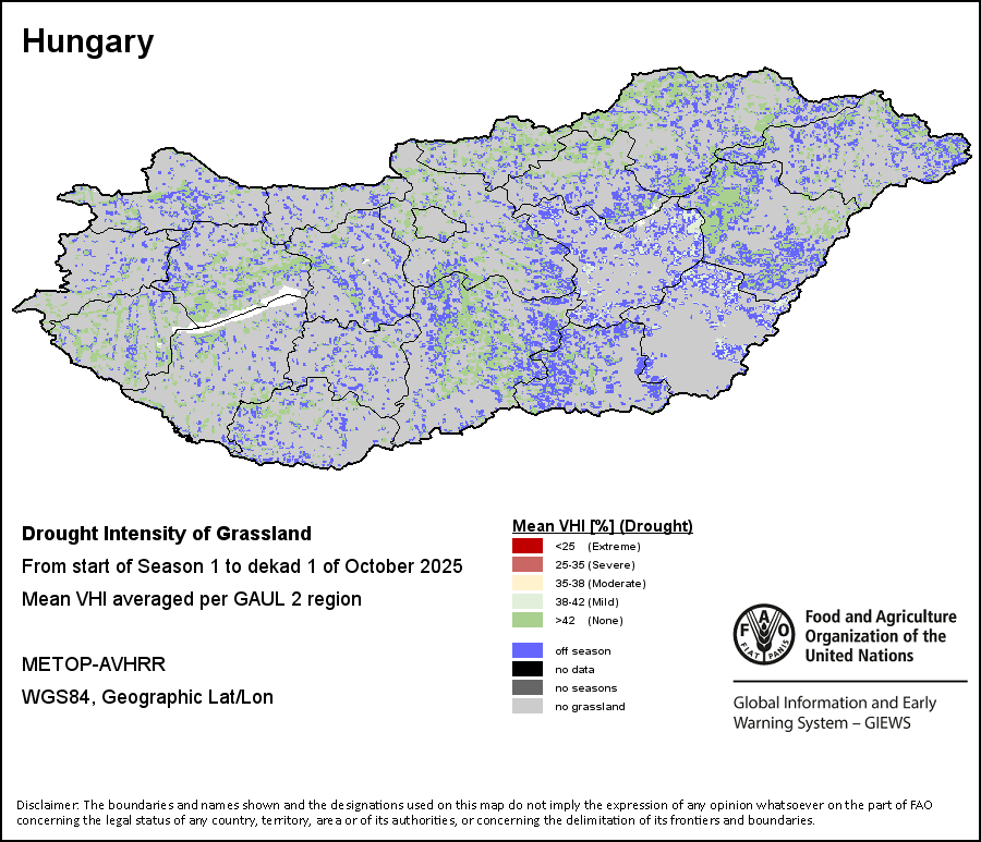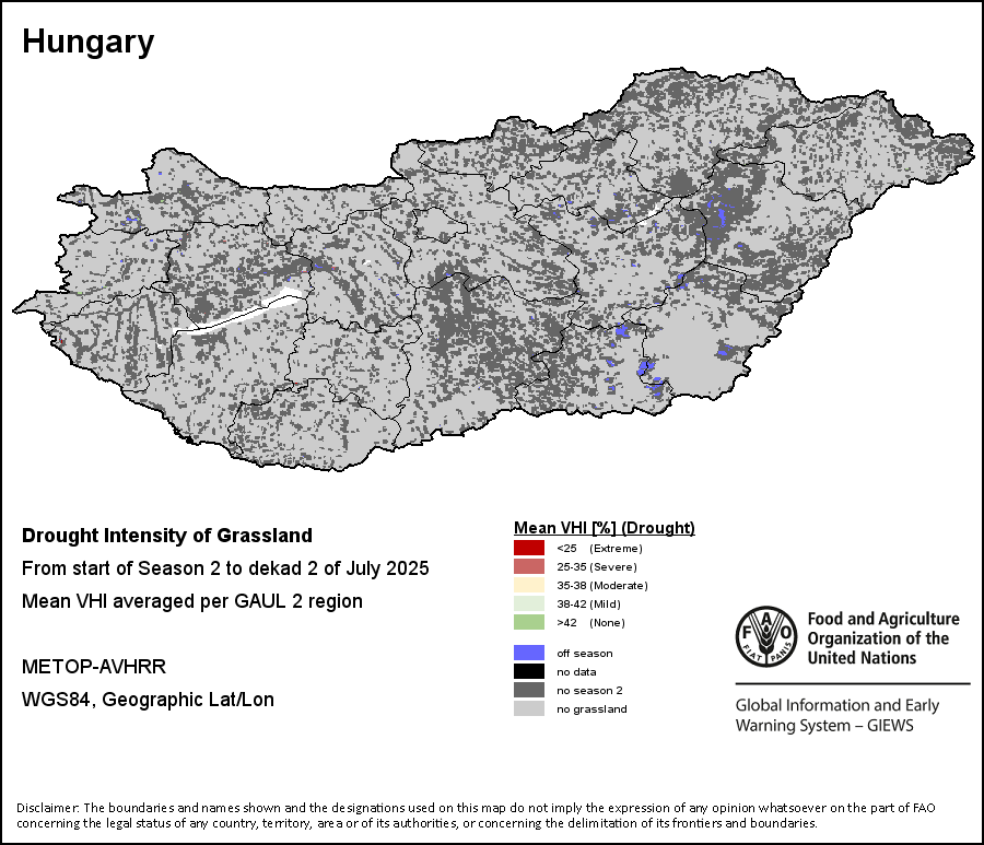 农业干旱依据其强度划分为四类:极端、严重、重度或轻度。干旱的强度通过各全球行政单位分层制度二级区域(GAUL 2)地区累积加权平均植被健康指数计算得出,意味着植被健康状况越差旱情就越严重。