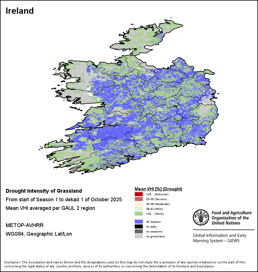 Les sécheresses agricoles sont classées selon leur intensité et sont réparties en quatre catégories: extrême, grave, modérée ou légère. L'intensité des sécheresses est calculée à l'aide de l’indice de santé de la végétation moyen pondéré, agrégé au niveau administratif GAUL 2, selon lequel moins l’état de santé de la végétation est bon plus la sécheresse est sévère.