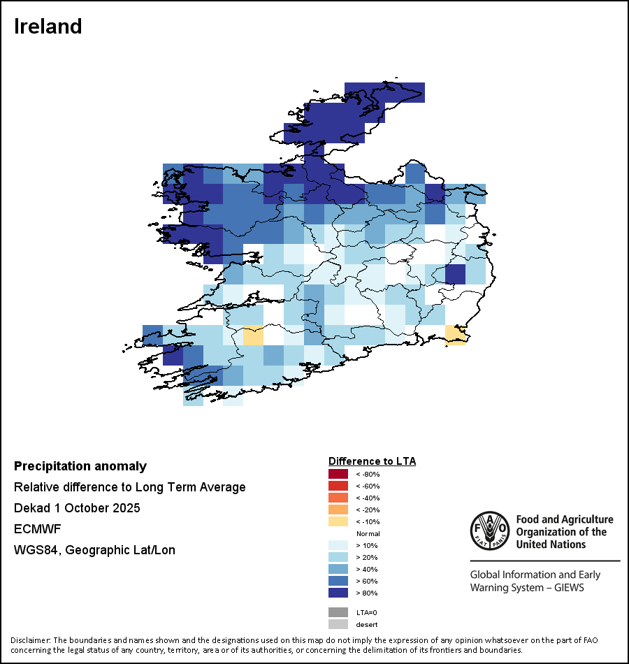 La carte illustre les volumes cumulés de précipitations au cours d’une décade (une période de 10 jours). Les estimations concernant les précipitations pour tous les pays africains (à l'exception du Cap Vert et de Maurice) proviennent du NOAA/FEWSNet, tandis que les données concernant les autres pays sont obtenues à partir du CEPMMT.