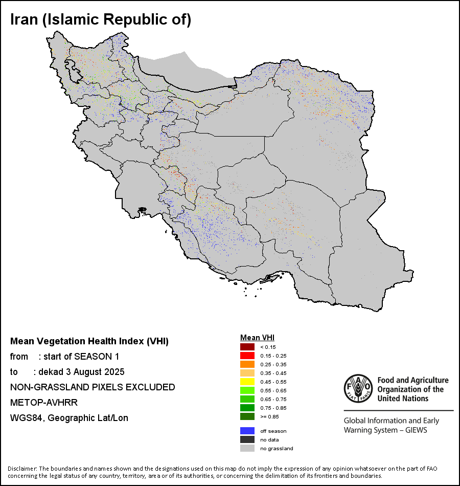 ويقصد بعبارة "نهاية الموسم" وصول المحصول أو العشب إلى النضج الفسيولوجي، وتحدد بتاريخ تقاطع المنحنى التنازلي للمؤشر المعياري للاختلافات الخضرية مع المؤشر المعياري للاختلافات الخضرية في نهاية الموسم (NDVIe)، وليس بالضرورة أن يتوافق هذا التاريخ مع فترة الحصاد.