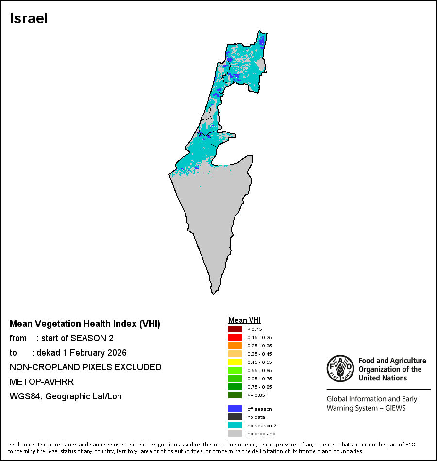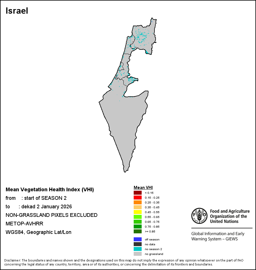 国别地图和图表显示的是最近36个月期间的季节、植被和降水指标。数据按每10天和每月呈现。 所有三项植被指标都是基于来自METOP-AVHRR遥感卫星分辨率1千米的10天(旬)植被数据(2007年及以后)得出的。1984-2006年期间的1千米分辨率数据得自NOAA-AVHRR16千米分辨率数据集。所有非洲国家的降水量估算(除佛得角和毛里求斯外)均取自NOAA/FEWSNet (16千米分辨率),其他国家则取自ECMWF(25千米分辨率)。 由于植被指标(如NDVI、VHI)的空间分辨率高于降水指标,因此,在部分国家能够通过有效分区统计数据计算植被指标的次国家级单元数量,超过能够以相同方式计算降水指标的次国家级单元数量。