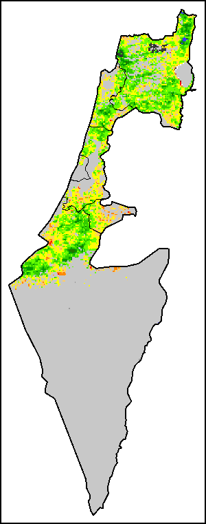 植被健康指数(VHI)根据植被健康状况以及气温对作物状况的影响情况显示干旱的严重程度。 VHI是一项综合指数,是用于计算ASI的基础性指标。它结合了植被状况指数(VCI)和气温状况指数(TCI)。TCI的计算采用了与VCI类似的方程,但它把当前气温与长期最高和最低值联系起来,因为一个假定前提是气温越高就倾向于造成植被状况恶化。比方说,VHI指数下降就意味着植被状况相对较差,而气温越高则意味着植被状况受到胁迫,较长时间延续则成为干旱的指征。VHI映像针对两个主要季节进行计算并分为三种时间模式:旬度、月度和年度。