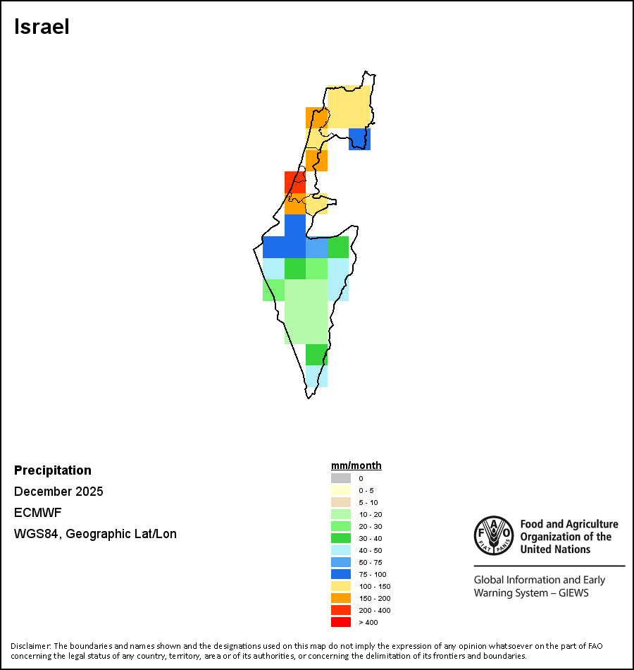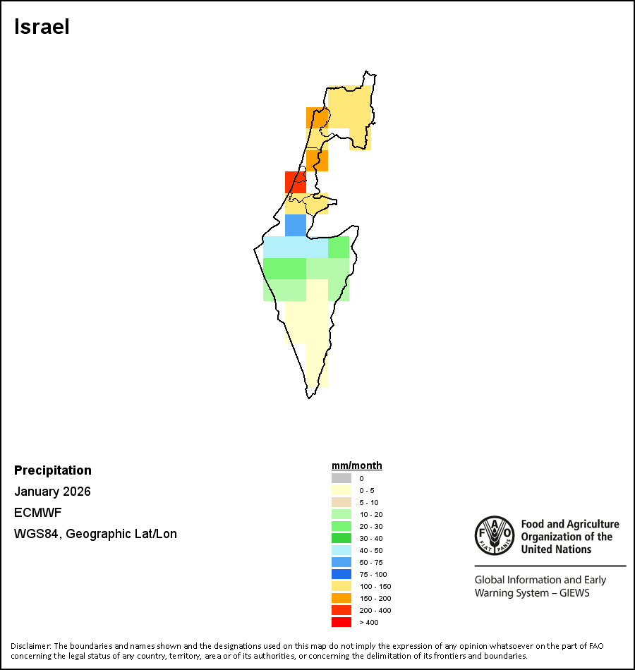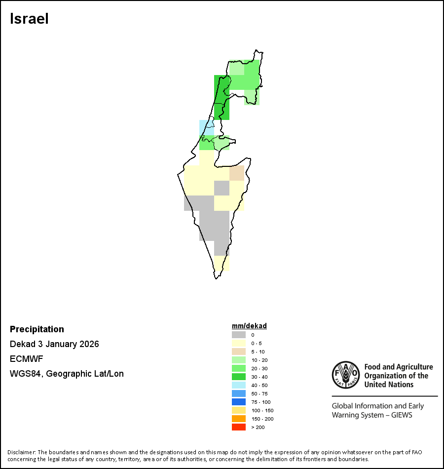 该图谱显示了每一旬(十天)的累积降水量。 所有非洲国家的降水量估算(除佛得角和毛里求斯外)均取自NOAA/FEWSNet,其他国家则取自ECMWF。