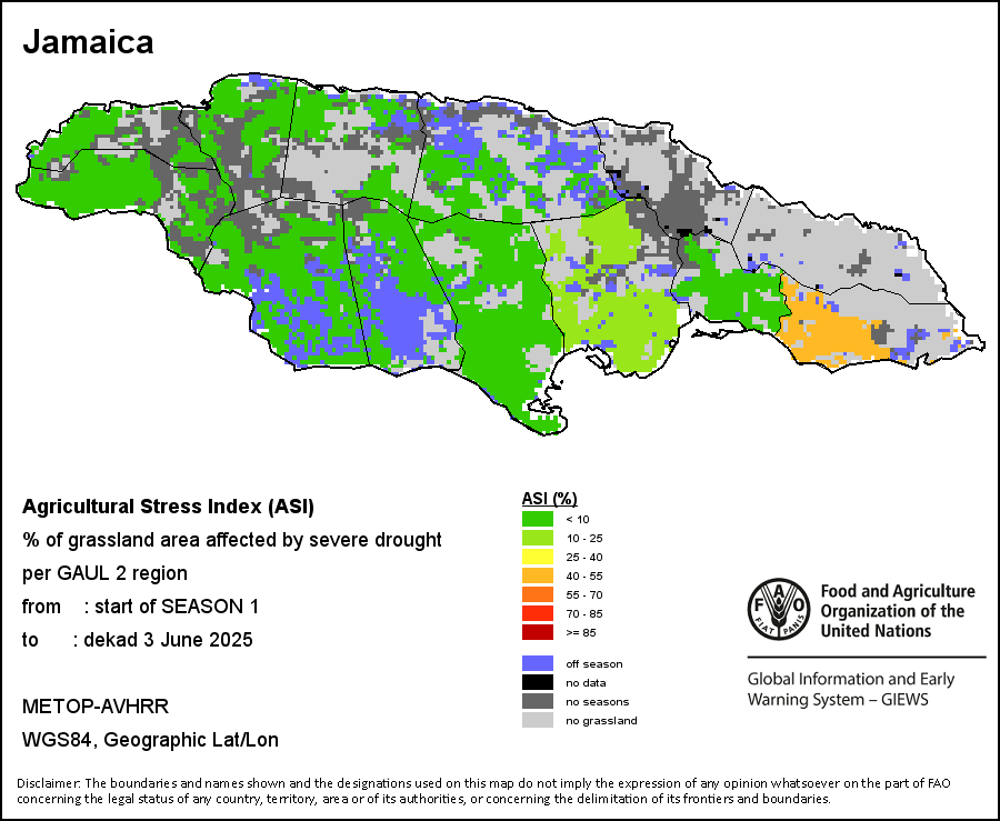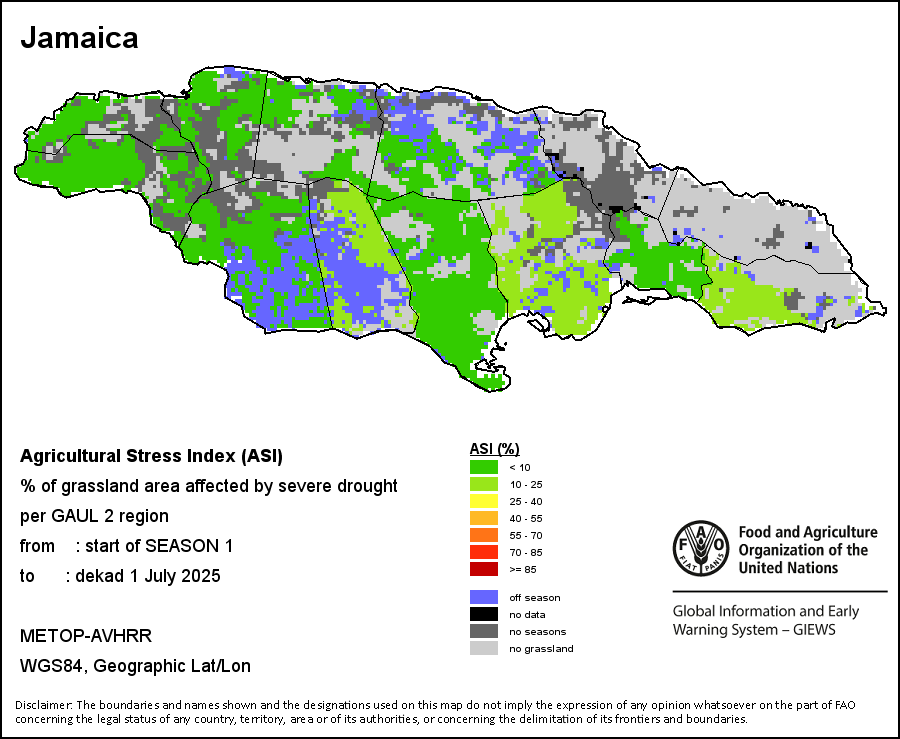 年度ASI显示的是某个行政区域内在整个农作季节受到旱情影响的耕地面积的百分比。 它与ASI的不同点在于ASI考查的是季节开局至当前十天的状况。