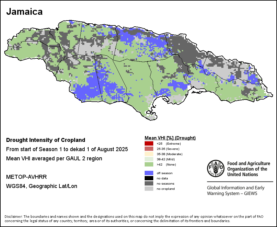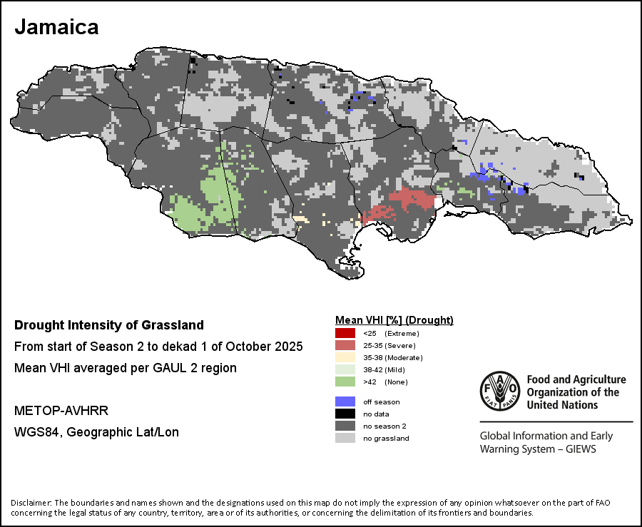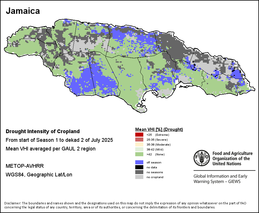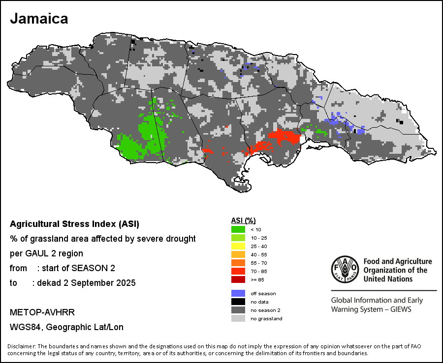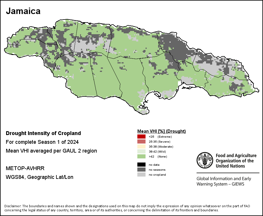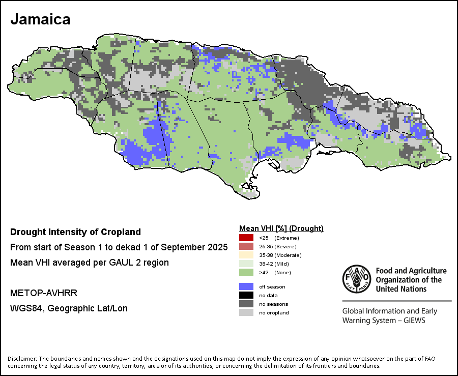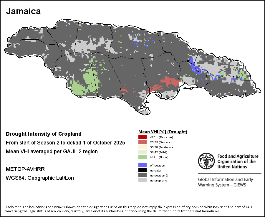 农业干旱依据其强度划分为四类:极端、严重、重度或轻度。干旱的强度通过各全球行政单位分层制度二级区域(GAUL 2)地区累积加权平均植被健康指数计算得出,意味着植被健康状况越差旱情就越严重。
