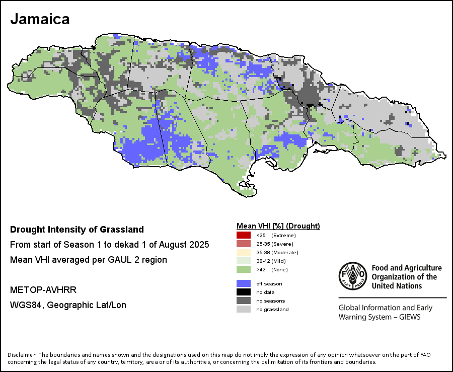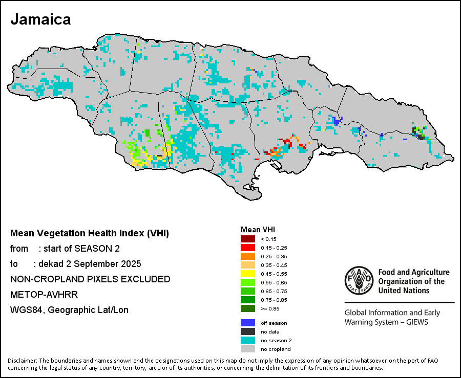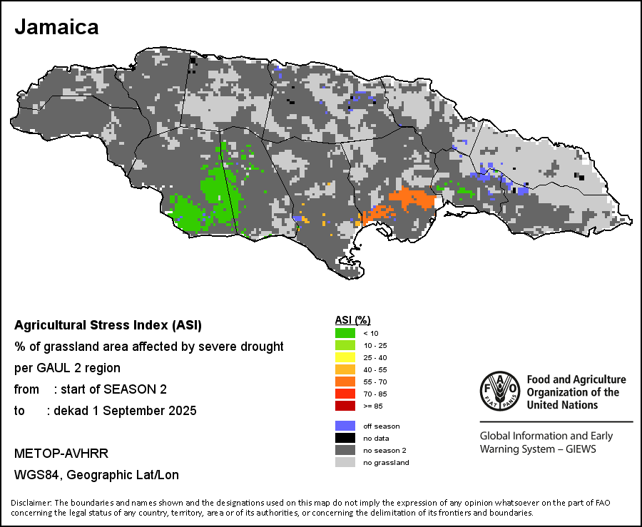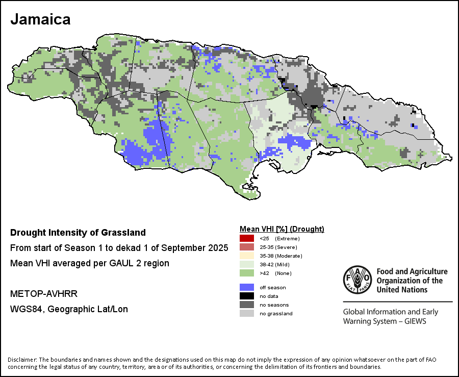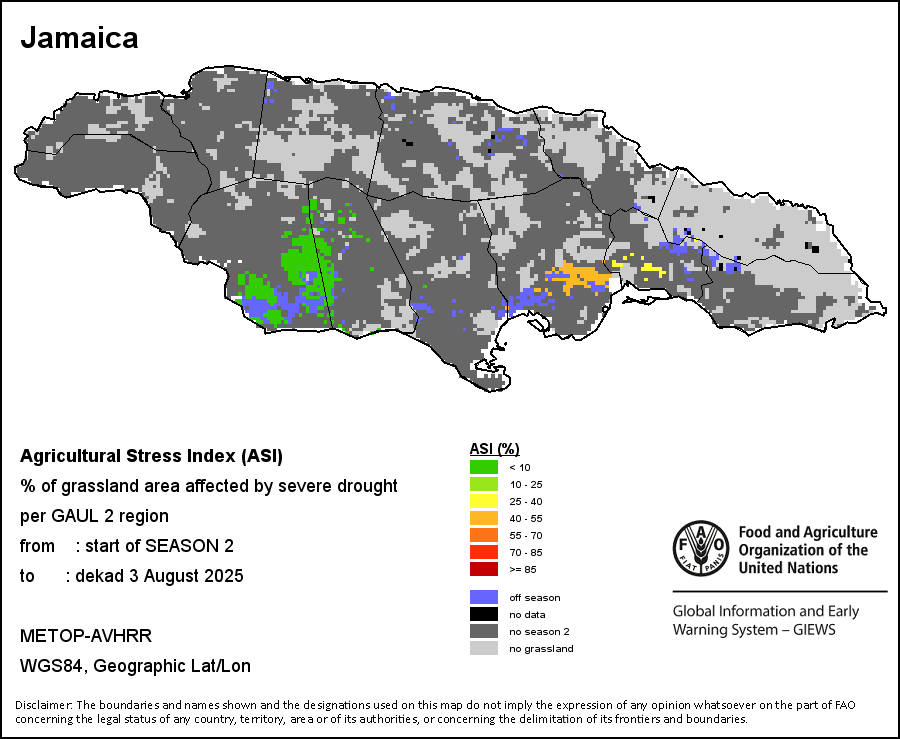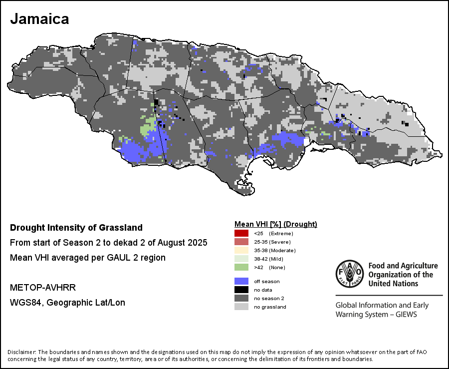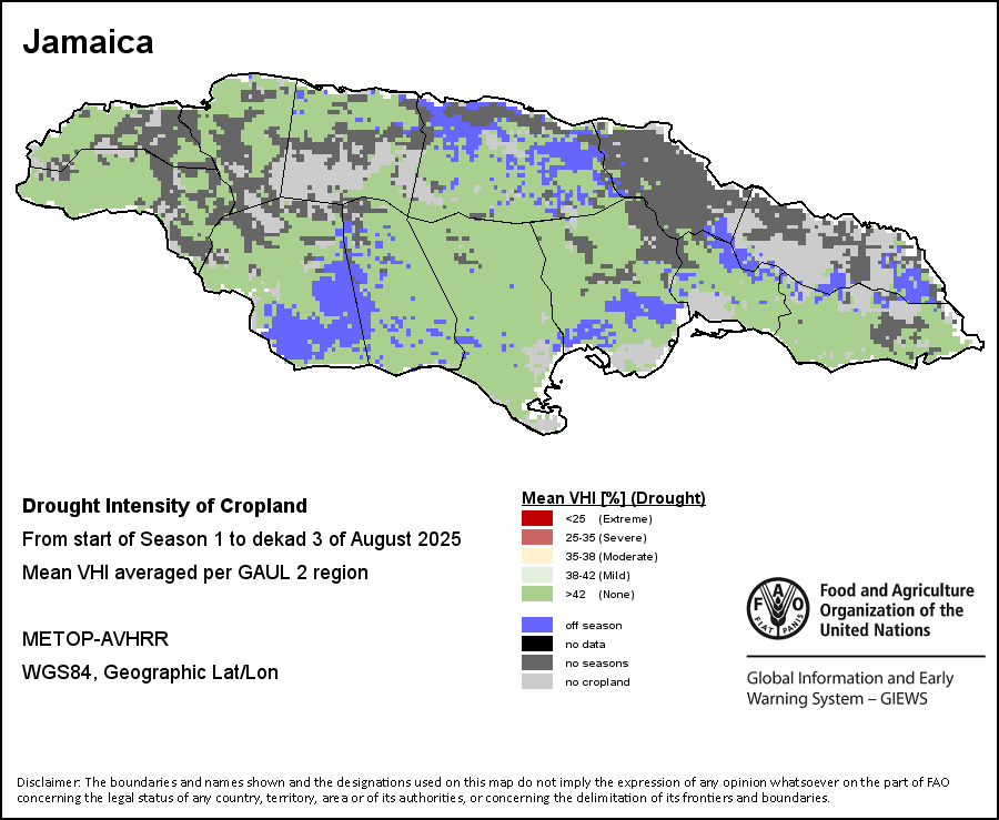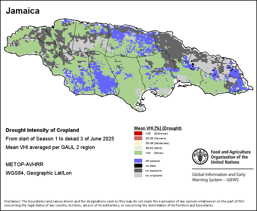 农业干旱依据其强度划分为四类:极端、严重、重度或轻度。干旱的强度通过各全球行政单位分层制度二级区域(GAUL 2)地区累积加权平均植被健康指数计算得出,意味着植被健康状况越差旱情就越严重。
