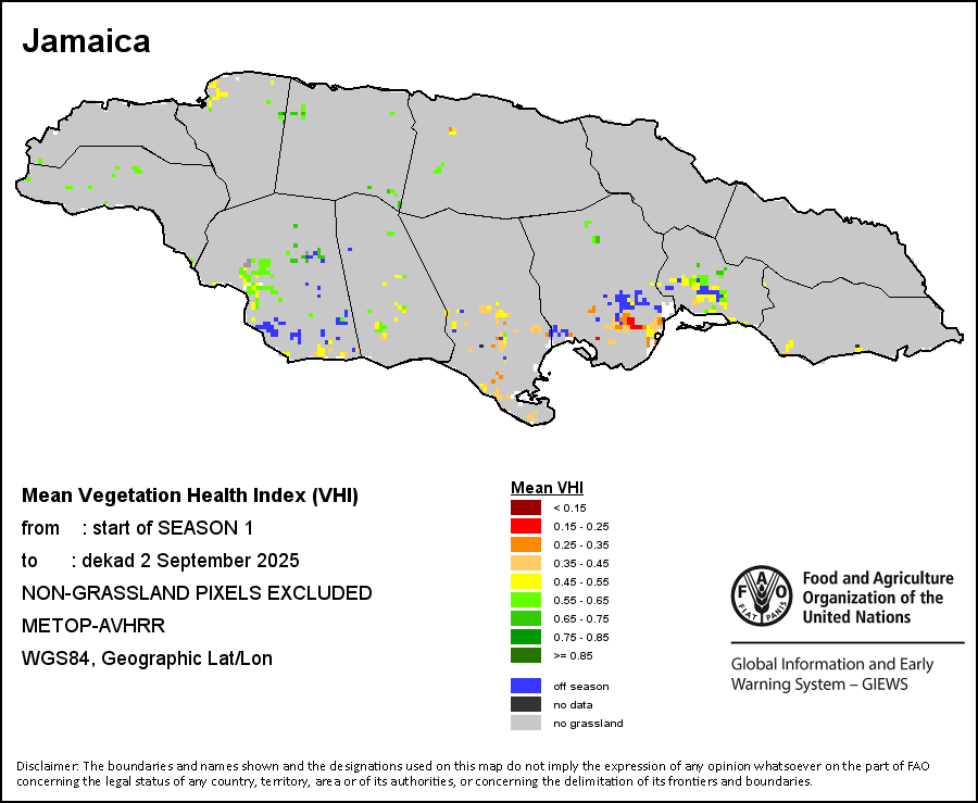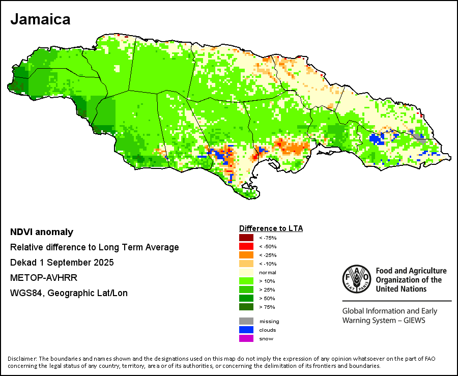 所有三项植被指标都是基于来自METOP-AVHRR遥感卫星分辨率1千米的10天(旬)植被数据(2007年及以后)得出的。1984-2006年期间的1千米分辨率数据得自NOAA-AVHRR16千米分辨率数据集。所有非洲国家的降水量估算(除佛得角和毛里求斯外)均取自NOAA/FEWSNet,其他国家则取自ECMWF。