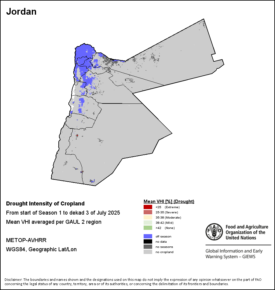 农业干旱依据其强度划分为四类:极端、严重、重度或轻度。干旱的强度通过各全球行政单位分层制度二级区域(GAUL 2)地区累积加权平均植被健康指数计算得出,意味着植被健康状况越差旱情就越严重。