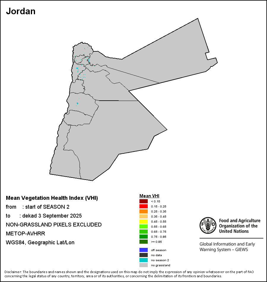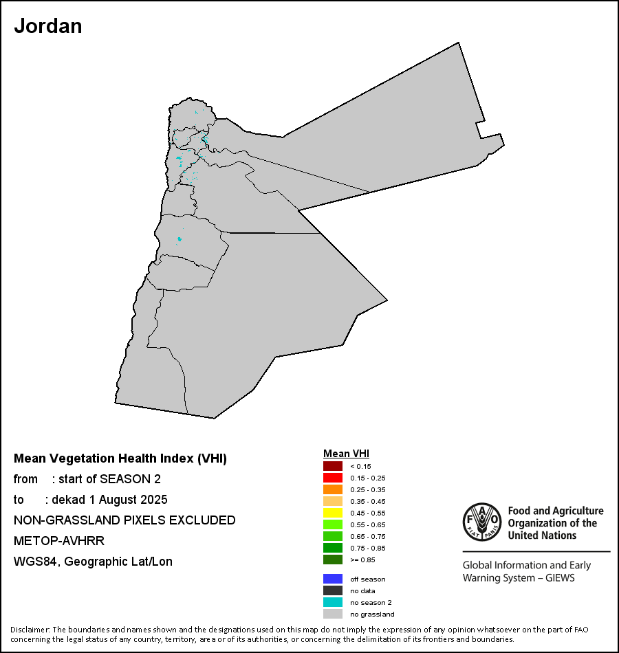 国别地图和图表显示的是最近36个月期间的季节、植被和降水指标。数据按每10天和每月呈现。   更多