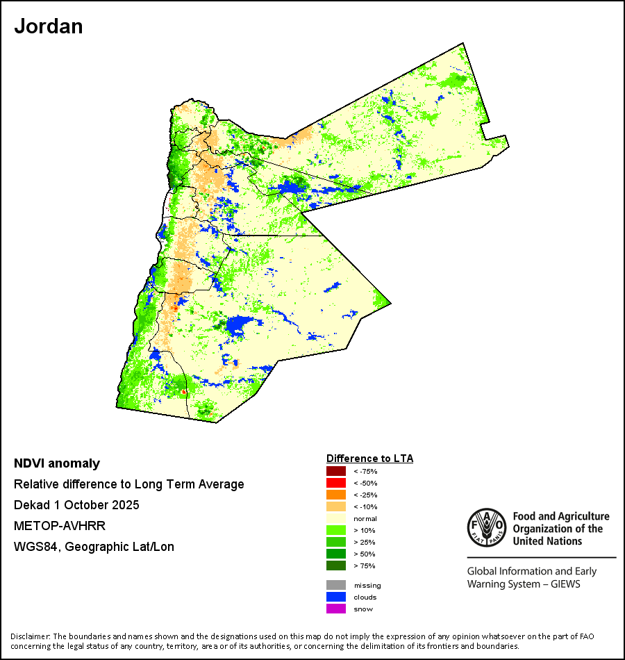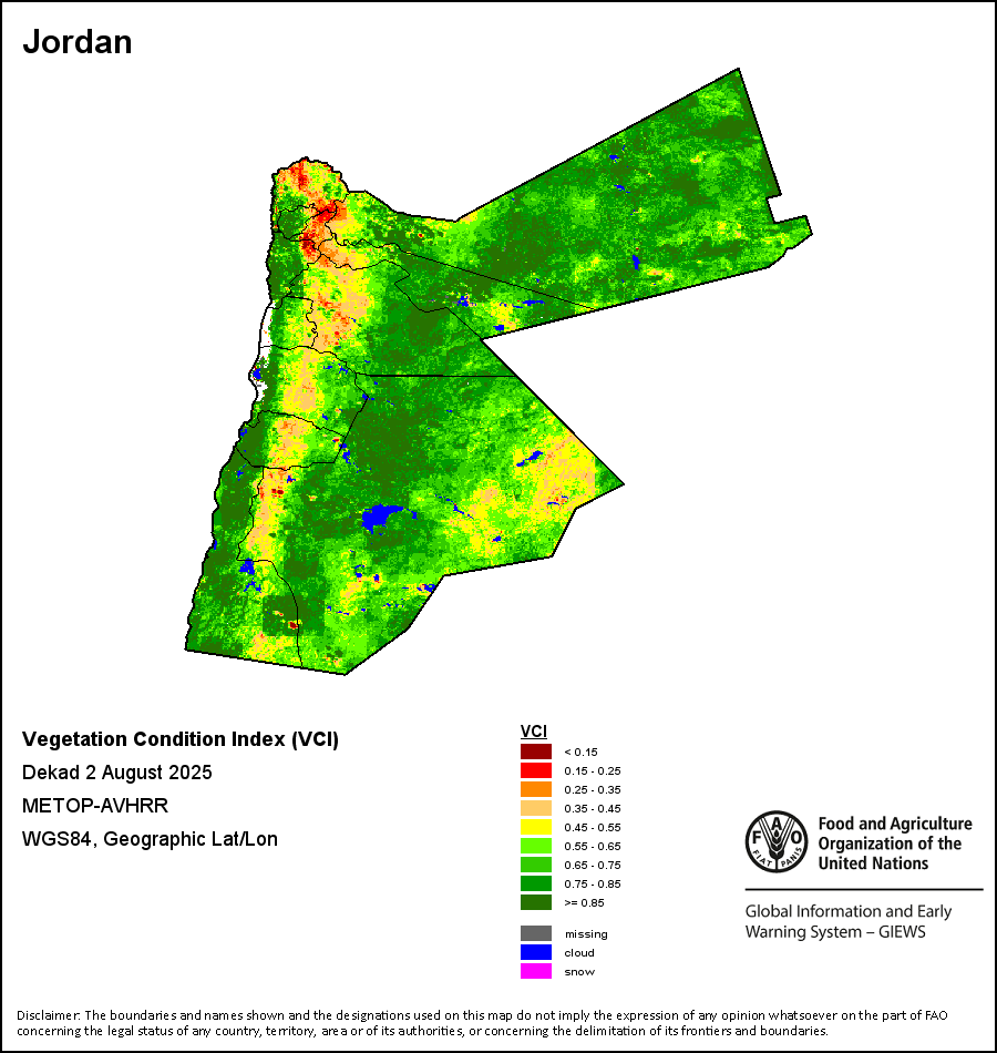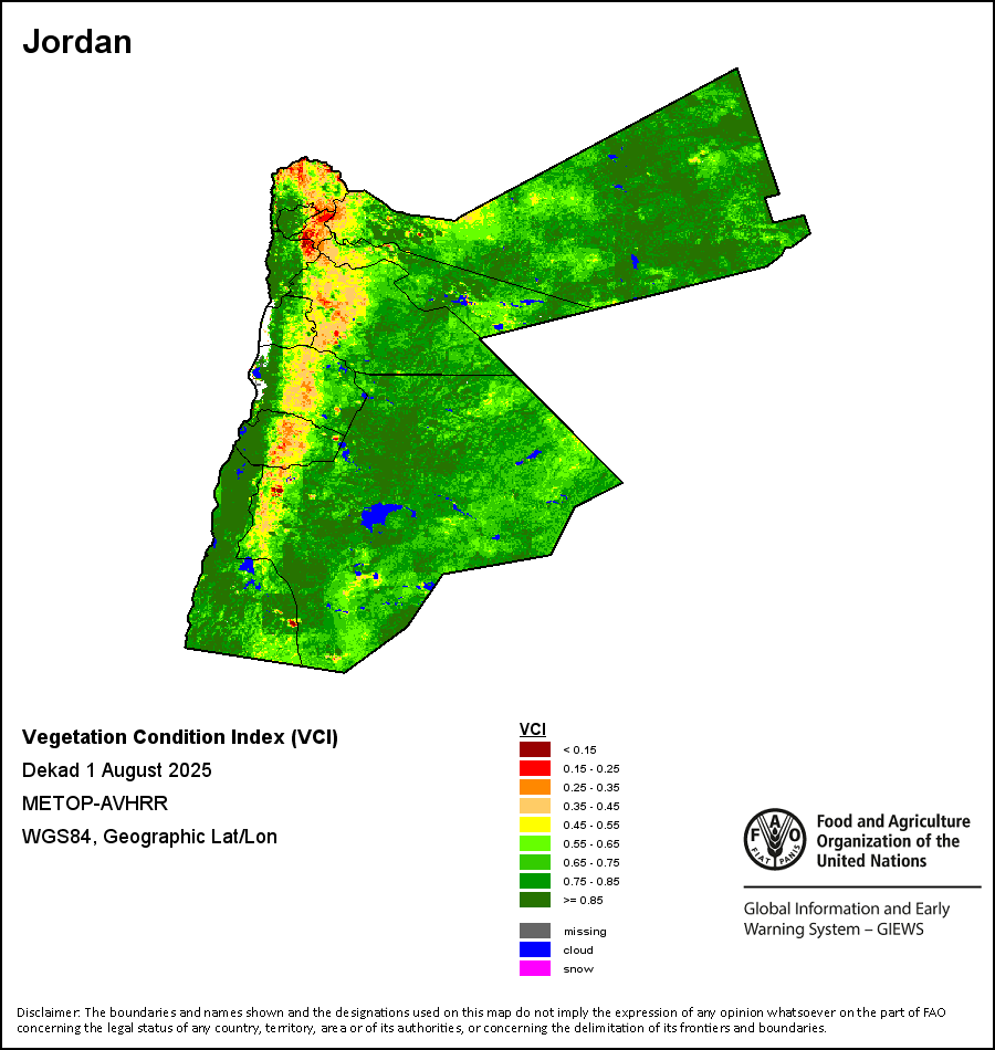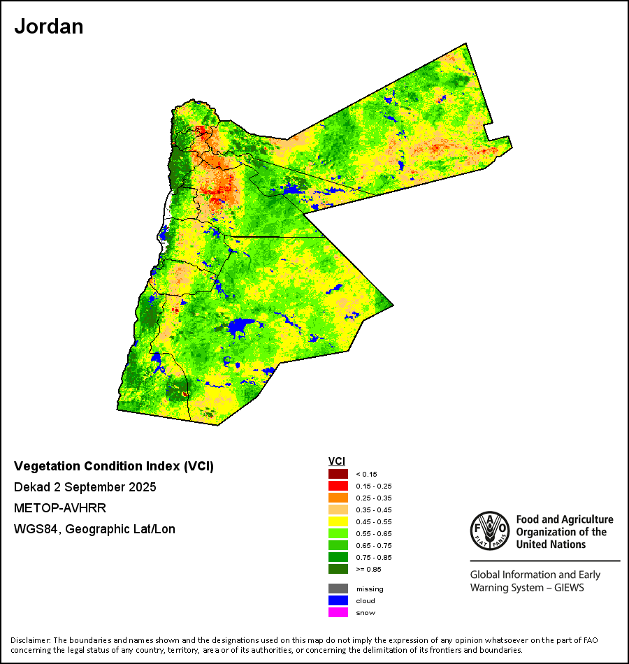 所有三项植被指标都是基于来自METOP-AVHRR遥感卫星分辨率1千米的10天(旬)植被数据(2007年及以后)得出的。1984-2006年期间的1千米分辨率数据得自NOAA-AVHRR16千米分辨率数据集。所有非洲国家的降水量估算(除佛得角和毛里求斯外)均取自NOAA/FEWSNet,其他国家则取自ECMWF。