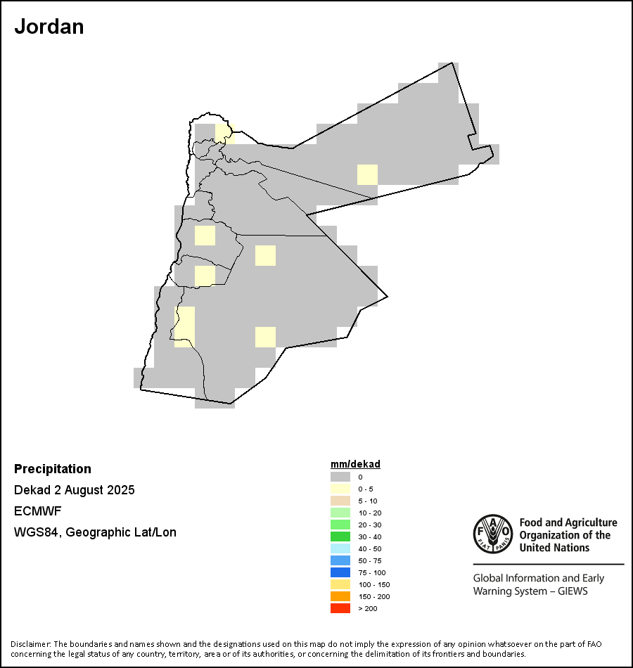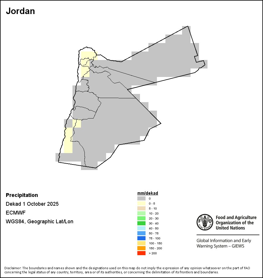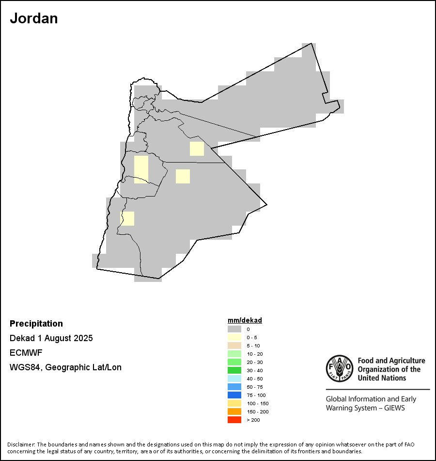 该图谱显示了每一旬(十天)的累积降水量。 所有非洲国家的降水量估算(除佛得角和毛里求斯外)均取自NOAA/FEWSNet,其他国家则取自ECMWF。