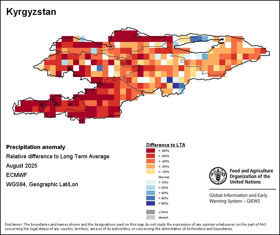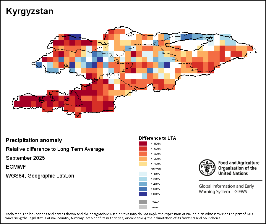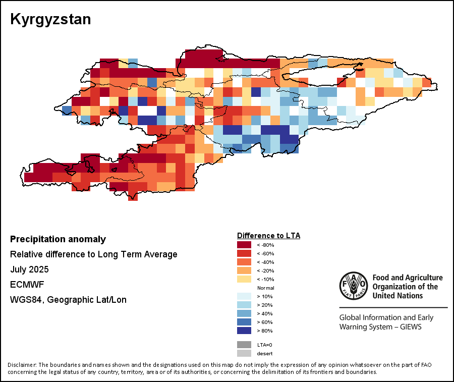 The map illustrates the difference between the current rainfall volume and the average level. Rainfall levels are compared with the Long-Term Average (LTA), which refers to the period 1989-2015. Warmer colours identify areas which have received lower-than-average rainfall, while colder colours are given to areas where precipitation has been above average.